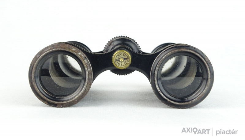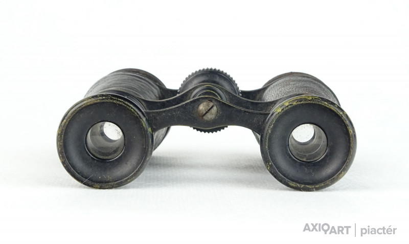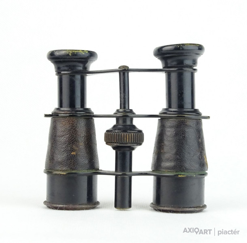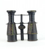 Antik, fekete színű, bőr bevonatos, francia, I. világháborús tüzérségi távcső iránytűvel.
