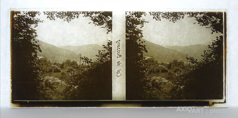 Antik francia üveglemez sztereó fotográfia Bussang XIX. század