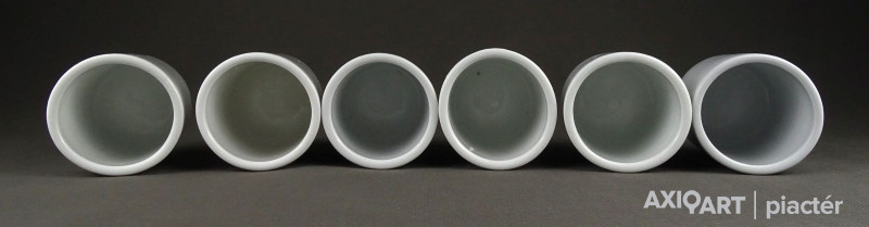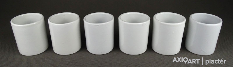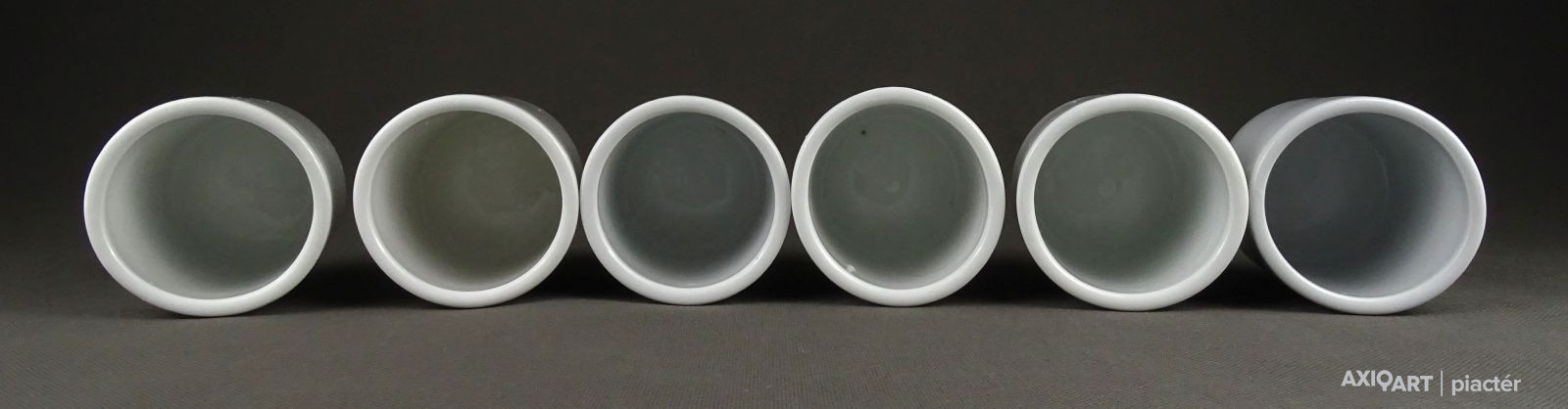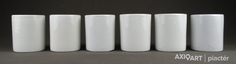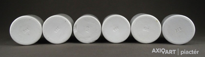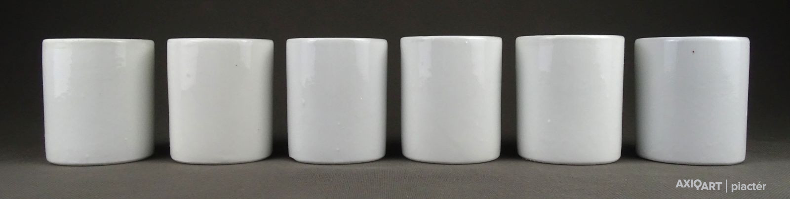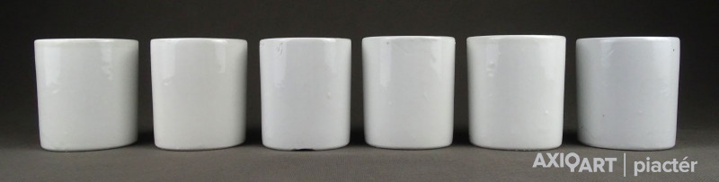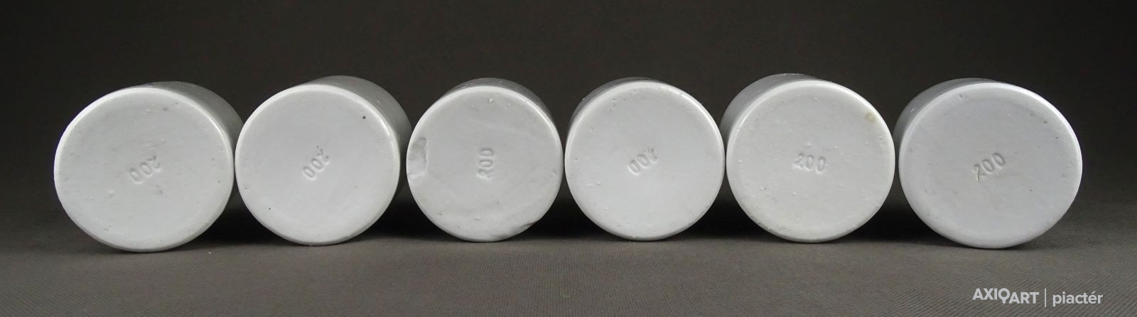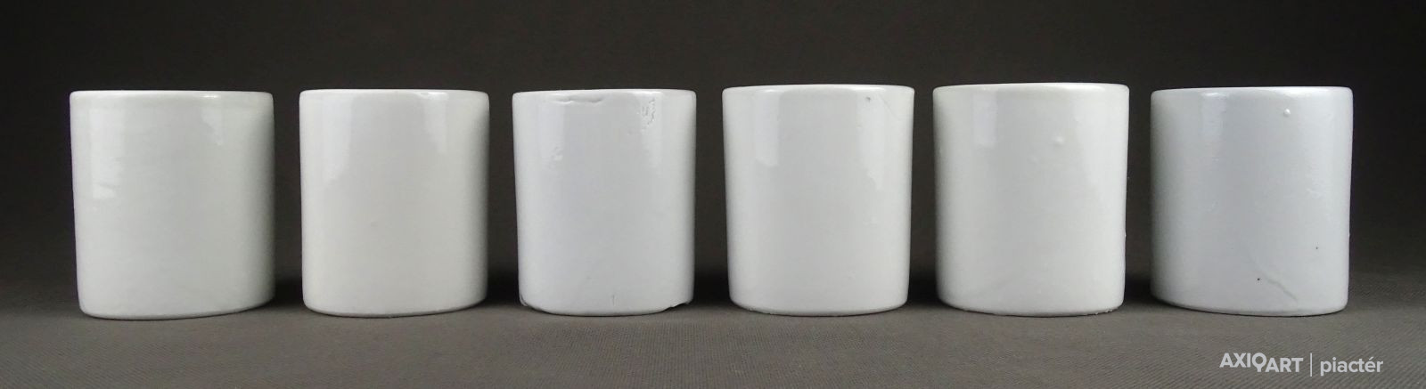Régi hibátlan állapotú, porcelán gyógyszertári tároló edény, patika tégely készlet, hat darab.