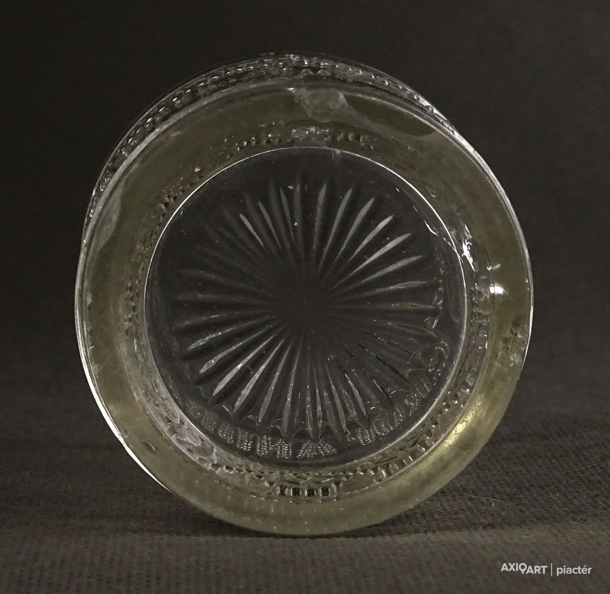 Antik, szép állapotú áttetsző üveg pohár. Talp peremén lepattanások találhatók, lásd fotó.