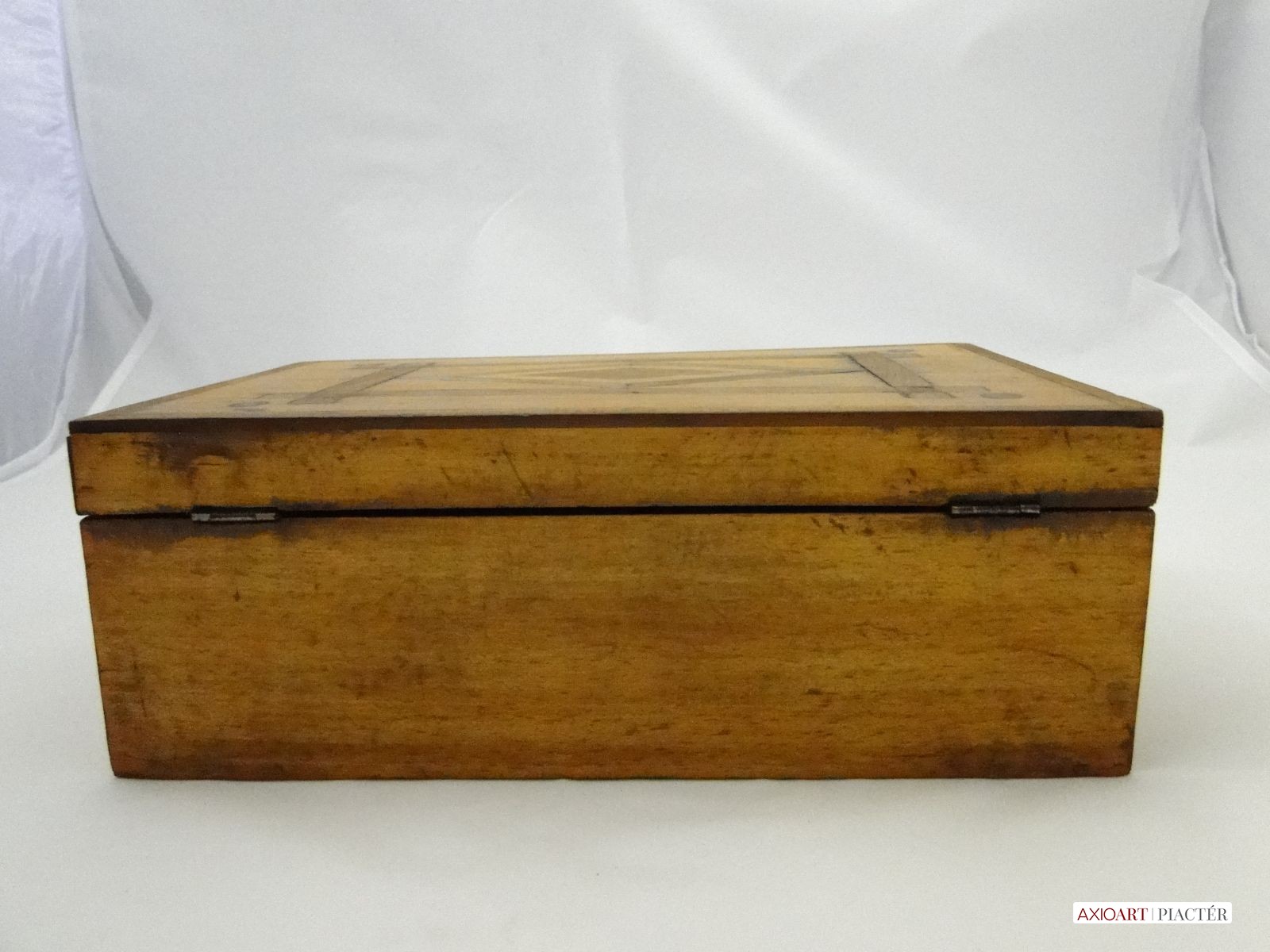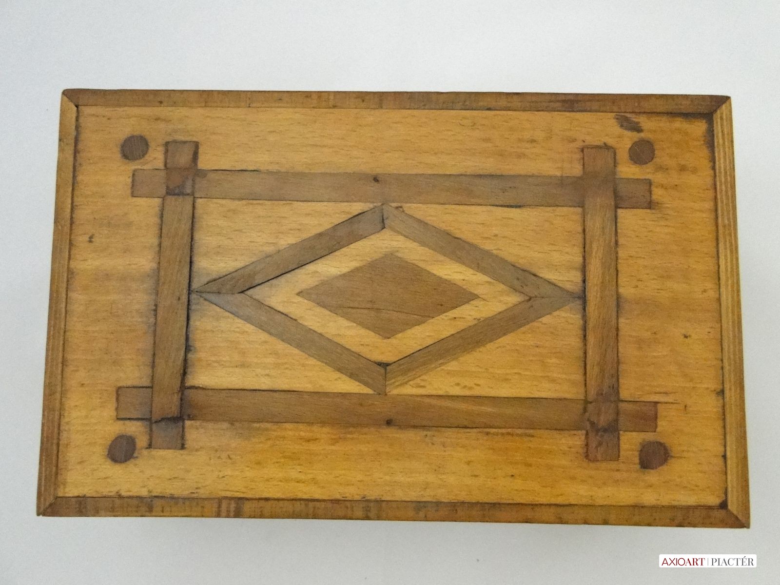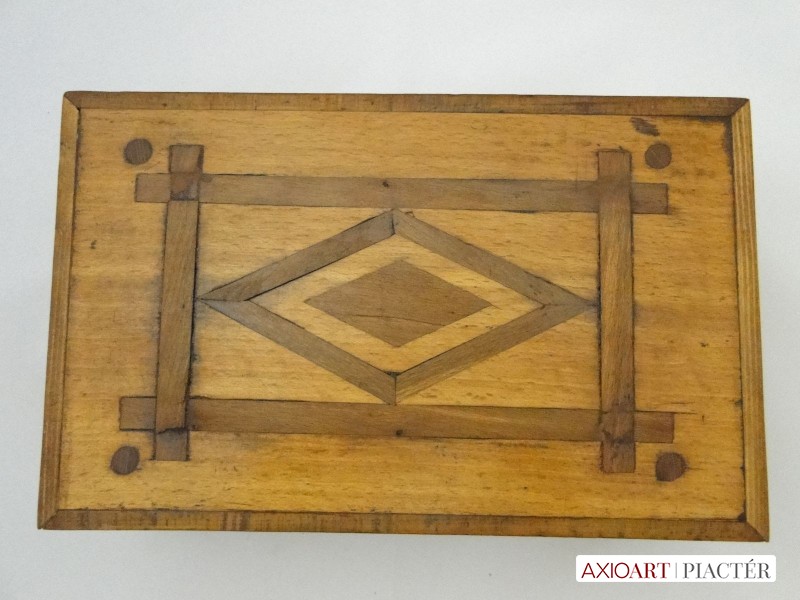 Tetején egyszerű fa intarziával.
