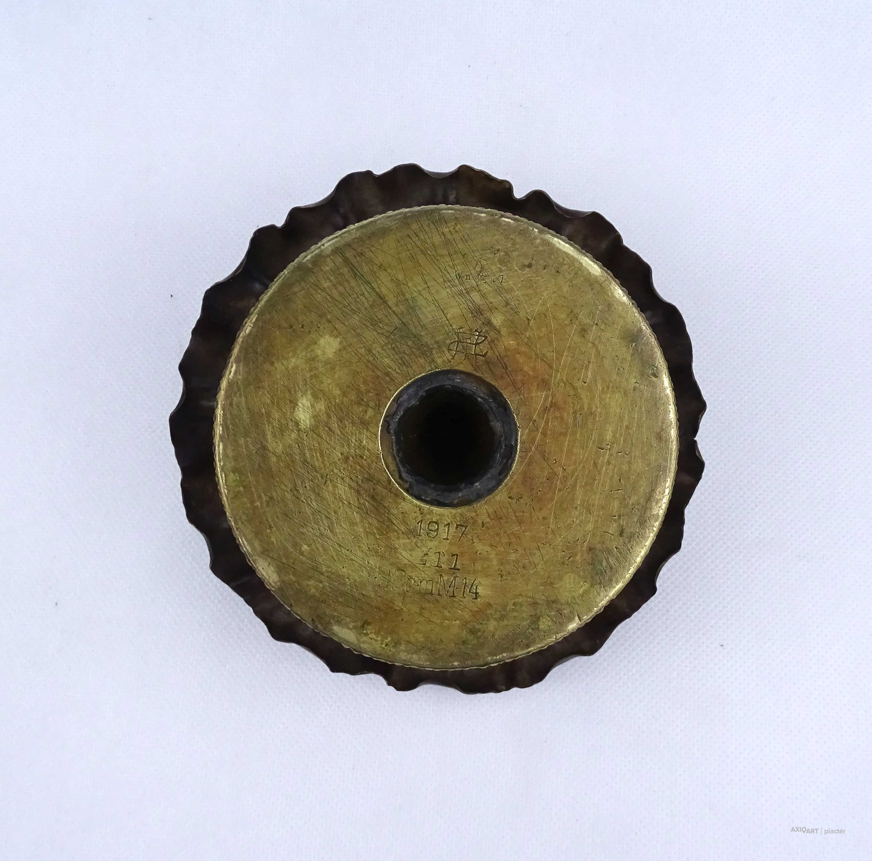 Antik hadifogoly munka löveg hüvelyből kialakított plasztikus kistál hamutál 1917
