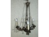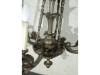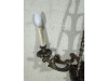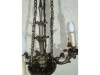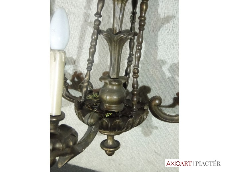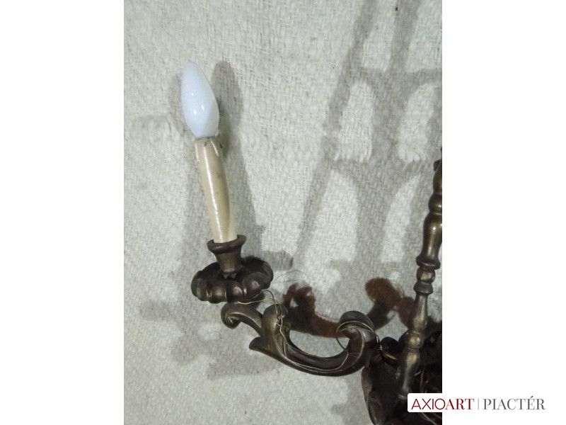 A fa díszek aranyozva vannak, szép állapotú darab. A karok papírmasé gyertyákban végződnek, kis méretű izzó való bele.