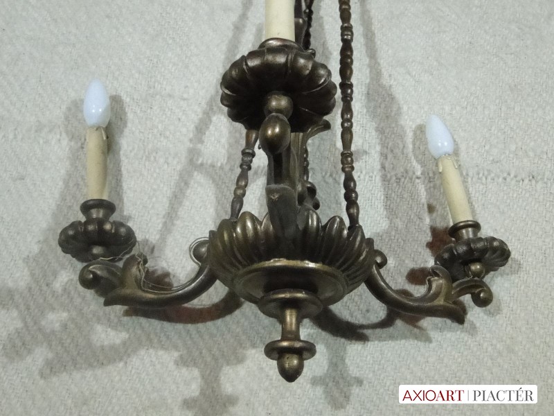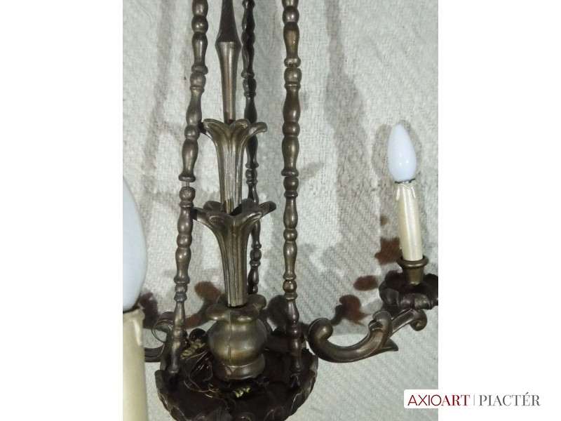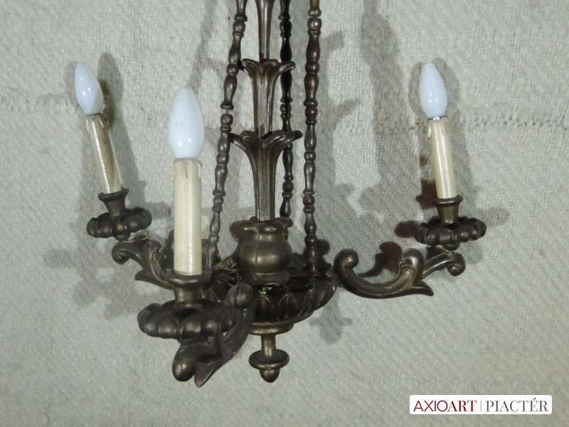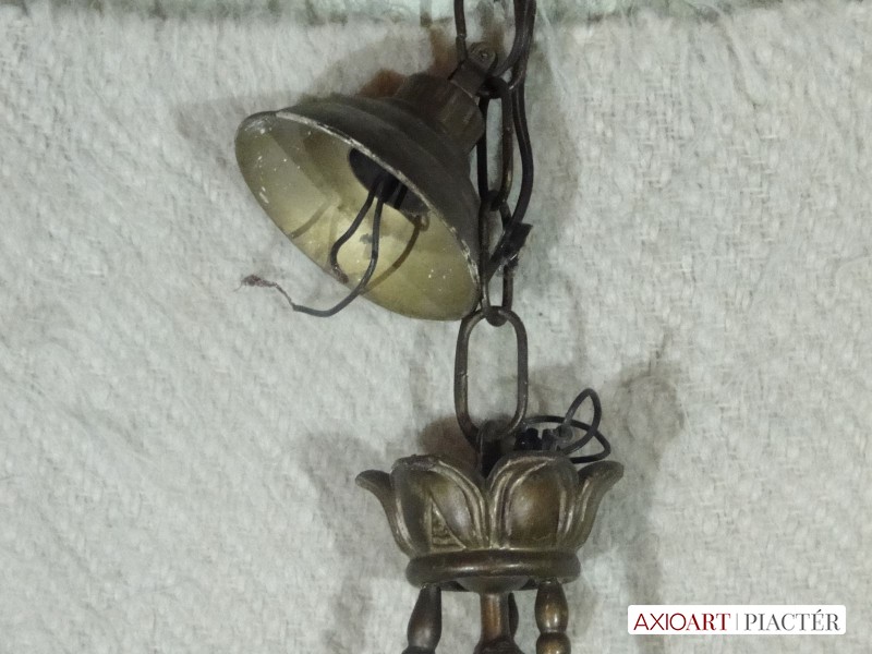 Nagyon szép, igazán régi faragott fa díszekkel rendelkező 3 karos csillár, mennyezeti lámpa.