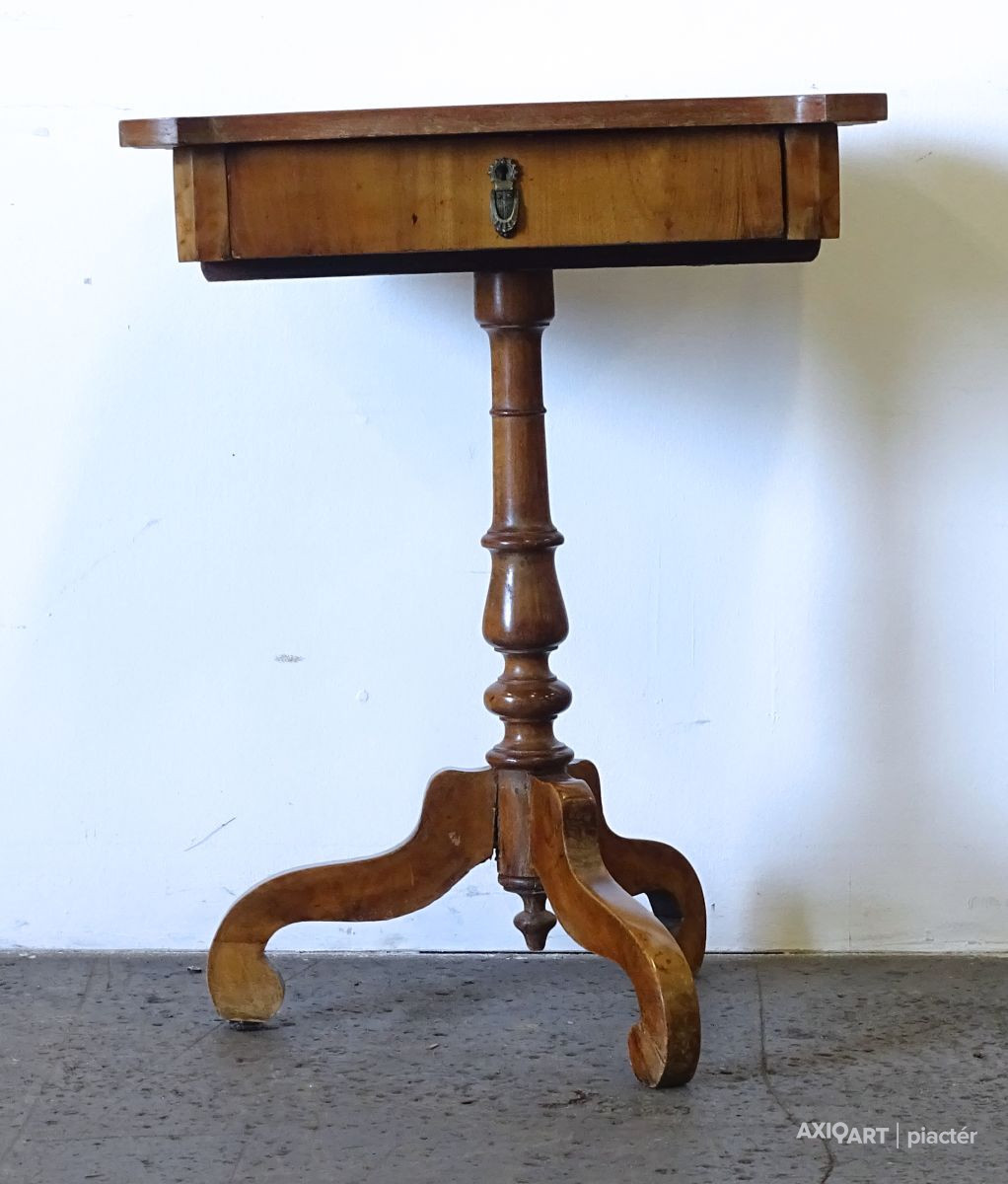 [1R253/KCS] Antik Biedermeier fiókos varróasztal, lerakóasztal. Restaurálás mentes, eredeti állapotban, az 1900-as évek elejéről. Magasság: 75.5 cm Szélesség: 59 cm