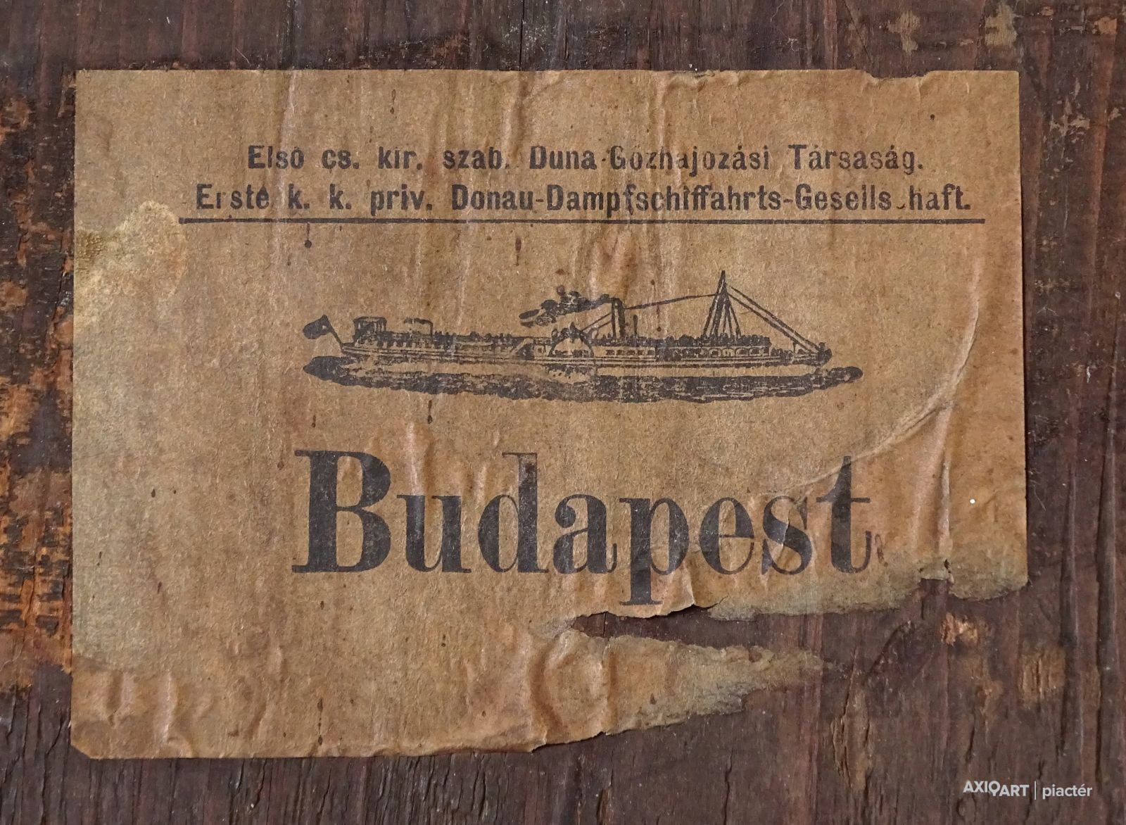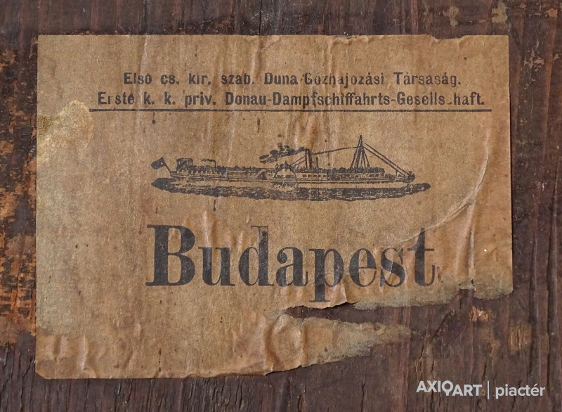 Hátoldalán korabeli hajózási szállítmányozási címke található: