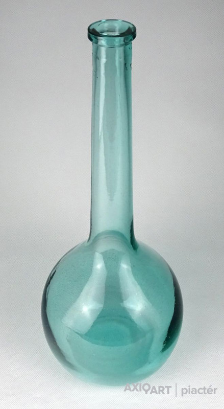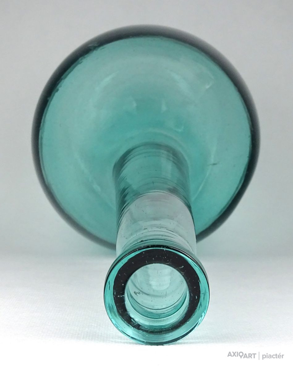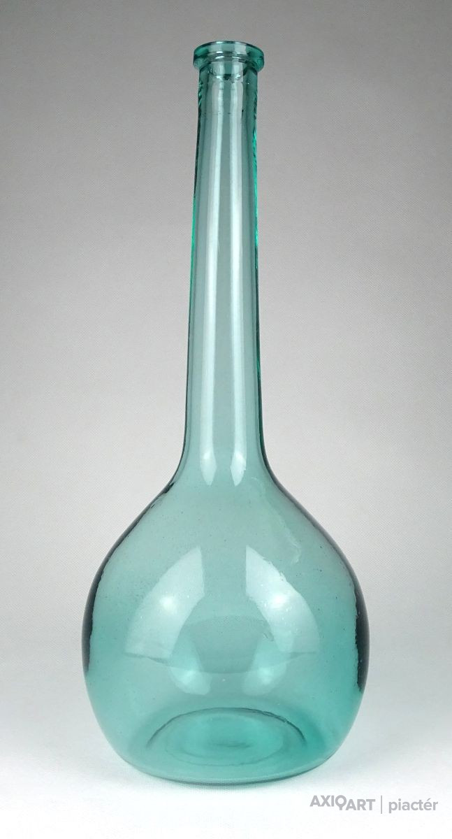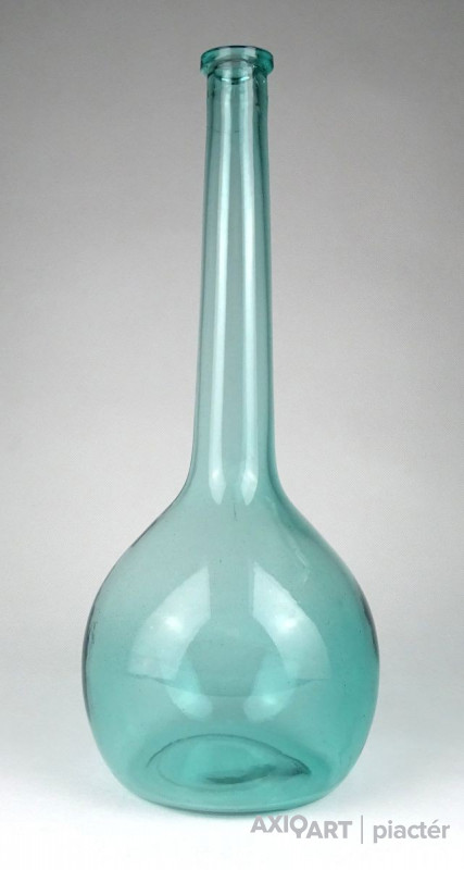 Antik, nagy méretű, hibátlan állapotú, halvány zöld színű, fújt üveg, hosszú szájú italos üveg.
