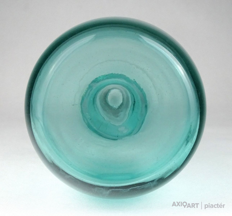[1O212/Z046] Hibátlan állapotú, színezett fúvott üveg váza, talpas üveg váza vagy üveg kupa. Skandináv design üveg. Talpán a fúvás szakítás nyoma szépen kivehető. Magasság: 14 cm Szélesség: 6.5 cm Súly: 0.215 kg Erik Höglund  Ugrás a navigációhozUgrás a kereséshez A papról (1902–1971) lásd Erik Höglund (pap) . Erik Höglund Született 1932. január 31. Karlskrona , Blekinge megye Halál 1998. január 27. (65 éves) Maria Magdalena plébánia , Stockholm Állampolgárság svéd Foglalkozás/megbízás Tervező, művész Ismert Tervezés Koszta Boda számára Feleség Maerit Levin (sz. 1953–1967; elvált) Ingrid Höglund (sz. 1974–1998; halála) Partner Monica Backström (partner 1968-1972) Rokonok Anna Höglund (lánya) Erika Höglund (lánya) Albin Höglund (fia)  Erik Sylvester Höglund , 1932. január 31-én született Karlskronában , 1998. január 27-én halt meg a stockholmi Maria Magdalena plébánián , svéd szobrász , festő , grafikus és üvegművész . Életrajz  Erik Höglund Torsten Höglund és Jenny Jonsson könyvelő fia, valamint Tore Enar Höglund szobrász és grafikus öccse volt . Tanulmányait a stockholmi Konstfackban végezte , először dekorfestészetet Fritz Sjöströmnek , majd szobrászatot Robert Nilssonnak , végül 1951–1952-ben Harald Sallbergnek grafikát . Erik Rosén , a Boda Üveggyár 1953 és 1973 között dolgozó tervezője fogadta be , és ez idő alatt jött el, hogy átalakítsa a svéd műüveggyártást az üvegtermékek kinézetére vonatkozó új ötletek bevezetésével. Ösztöndíja többek között metszetekkel kapcsolatban, a színek és a földes, aszimmetrikus dizájn sikeres lett a külpiacon. Bodán töltött ideje alatt fenyővel, vasalással és bútorokkal is foglalkozott. Később más üveggyárakkal is együttműködött, például a Pukeberggel , a Lindshammarral és a Studioglas Strömbergshyttannal . 1968-ban Monica Backström üvegművésszel megalapította a Backström & Höglund Design AB formatervező céget, amely bútorok, háztartási eszközök és használati tárgyak tervezésével foglalkozik. Höglund tagja volt a Vet Hut AB-nek is, amelyet 1971-ben alapított a Boda glasbruk tíz tervezője szokásos munkájuk mellett: Erik Höglund, Monica Backström, Ann Wolff , Göran Wärff , Bertil Vallien , Ulrica Hydman-Vallien , Per Arne. Lundahl, Liselotte Jörgensdotter, Gunhild Sinnemark és Rolf Sinnemark . Erik Höglund szobrászként számos köztéri dekorációt készített különféle anyagokból, köztük téglából és betonból. Ezt követően gyakran dolgozott együtt olyan építészekkel, mint Jon Höjer a Höjer & Ljungqvistnél , Bengt Gate és Lars Ågren .  Kiállítás  A stockholmi Palmcrantzska gyárban korábban Ulf G. Lindén állandó kiállítása volt Erik Höglund alkotásaival. Ezt a gyűjteményt 2009 szeptemberében a karlskronai Blekinge Múzeumnak adományozták.  Közművek válogatásban  Két állat és egy játék (1966), gránit, Bredängs Torg Stockholmban. Fiskargumman a karlskronai halpiacon. Négyzet alakú oszlop Gävle-ben Erik Höglund mintegy 150 köztéri dekorációt készített üvegből, bronzból, kovácsolásból, téglából, gránitból és betonból. Kerékpárosok I (1956), bronz, a trelleborgi oktatási intézmény Kerékpárosok II (1957), bronz, a karlskogai oktatási intézmény Kerékpárosok III (1957), bronz, stockholmi Hökarängens iskola Az élő szó (1958), festmény a nybrói városi könyvtárban Kerékpárosok IV (1958), bronz, Handverkstorget Sandvikenben Kerékpárosok V (1959), Sjöboskolan, Borås Falfestmény üvegablak (1962) a borgholmi templomban Kristallglasskogen (1964), üvegmozaik fal, Ellagårdsskolan Täby községben A tudás fája (1966), vasműves és üveg, Folkets Hus Nybroban Állatszobrok (1964-67), gránit, Hallsberg Két állat és egy játék (1966), gránit, Bredängs torg Stockholmban Tó szökőkúttal (1967), gránit, Trelleborg Ülő terhes nő (1971), bronz, Haganässkolan Älmhultban Hajó halászokkal (1972), vas, üveg és fa, Hotel Witt Kalmarban Négyzet alakú oszlop (1971-74), beton, Stortorget Gävle -ben A súlyemelő (1974), bronz, az östersundi sportcsarnok Gyűrűk a vízen (1976-77), bronz, Rödeby Torg , Karlskrona önkormányzat Az élet játéka , tégladomborműves fal és régi érmék , üveg, mindkettő 1979–1980, Sparbanken Linköpingben Úszók (1980), kovácsoltvas, úszócsarnok Rödebyben , Karlskrona önkormányzat Cirkuszgömb (1980-81), kovácsoltvas, Kristianstad megyei tanács Fiskargumman (1981-82), bronz, halpiac Karlskronában Az olvasócsalád (1983), bronz és üveg, Kalmár Városi Könyvtár Életmentő (1985), réz, úszócsarnok Haganässkolanban Älmhultban Dans bort i vägen (1985), bronz, Torsås volt Anya és gyermeke , bronz, Trelleborg A büszke apa és Két ember , bronz, Eskadern lakónegyed Linköpingben Játssz szobrot téglából, Lönneberga óvoda, Norra Fäladen Lundban  Forrás: wikipédia