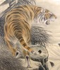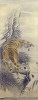 Jelzett, kínai mester által készített, papír akvarell kínai kép tigrissel, háború előtti darab lehet.