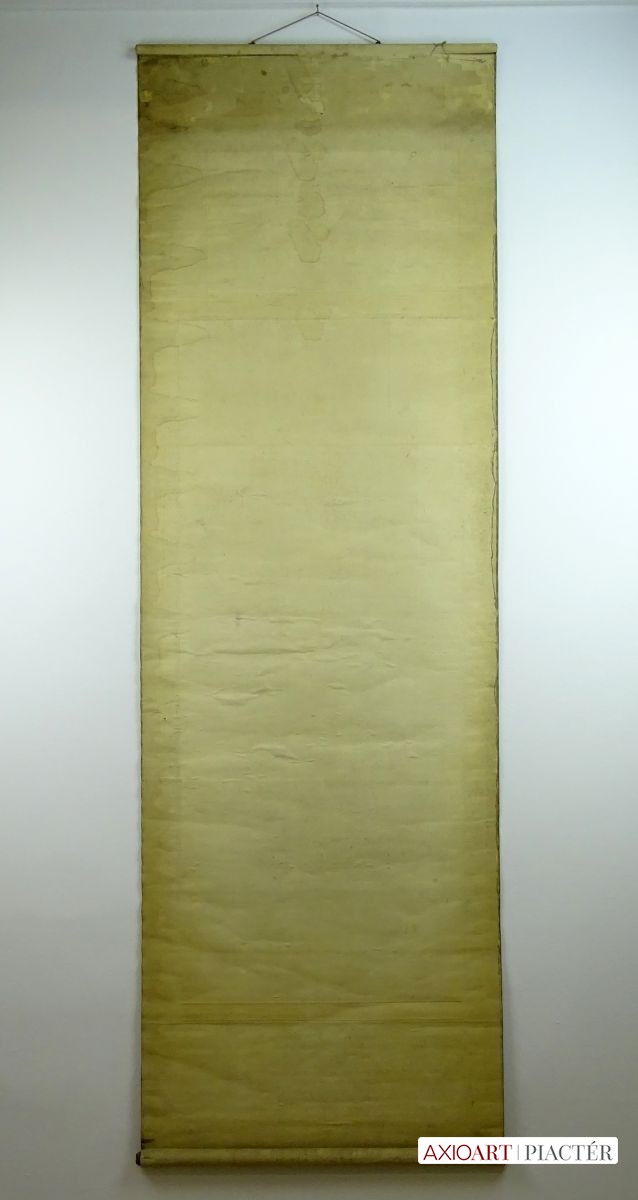 A kép pergamenként összetekerhető, a festmény nagyon díszes, selyem szerű textíliára kasírozott, lásd fotó.