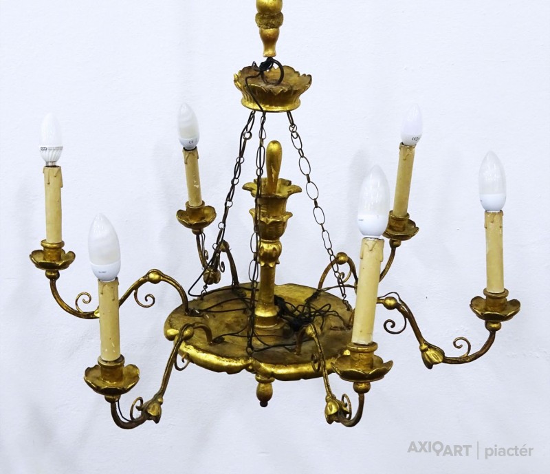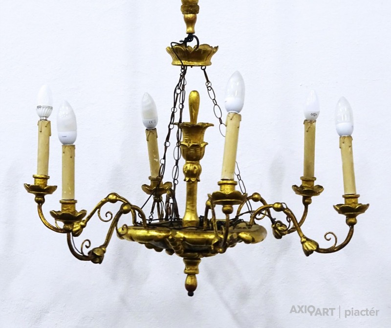 Antik hatkarú aranyozott fa csillár