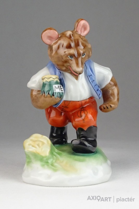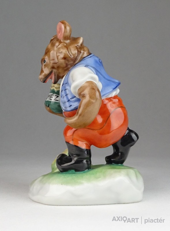 Régi, hibátlan állapotú, kézzel festett Herendi porcelán medve figura, mézes csuporral.
