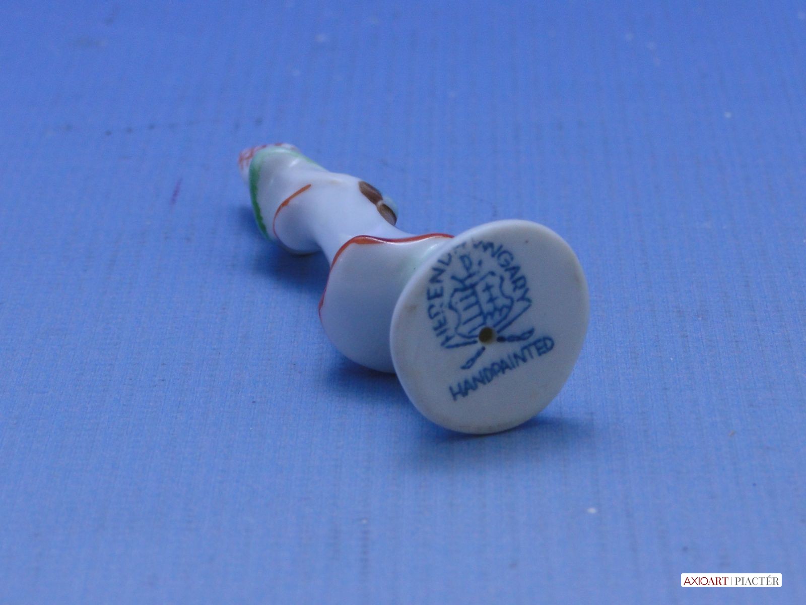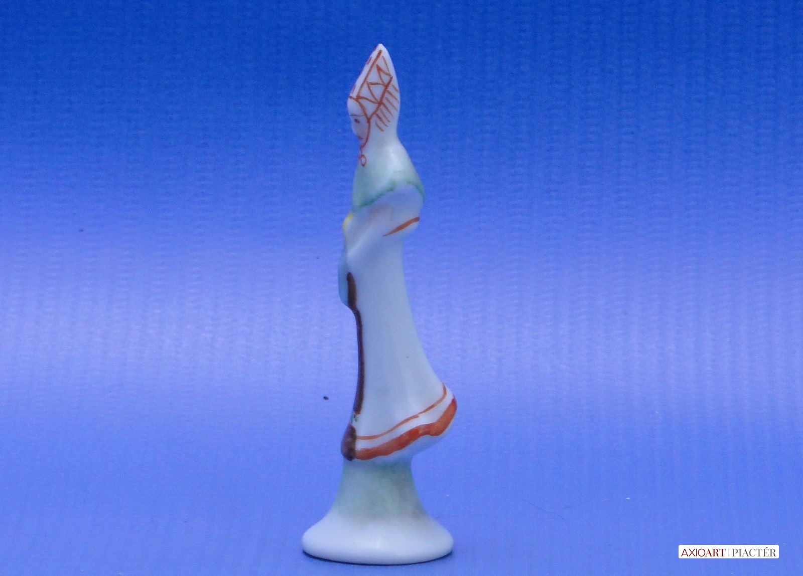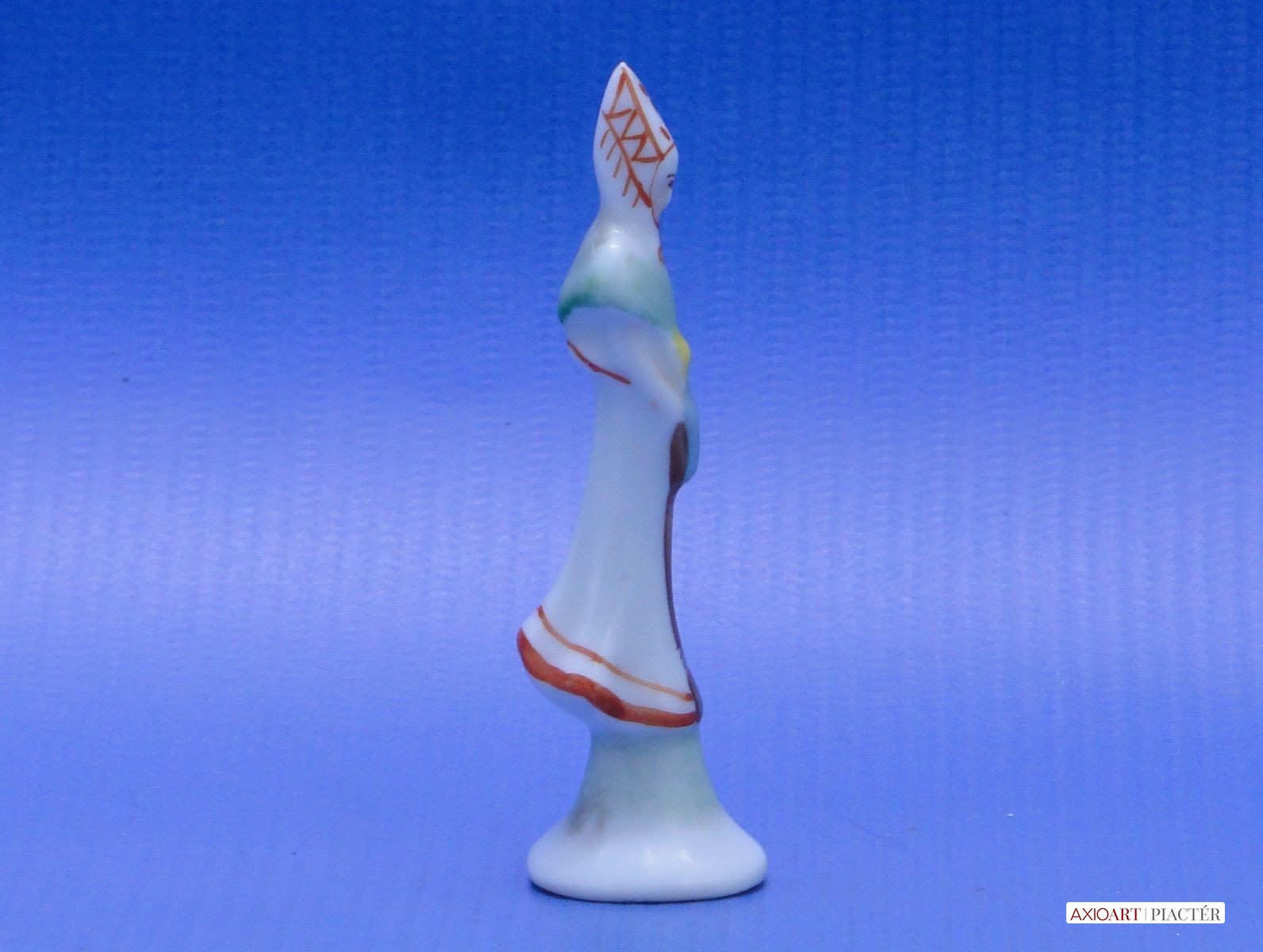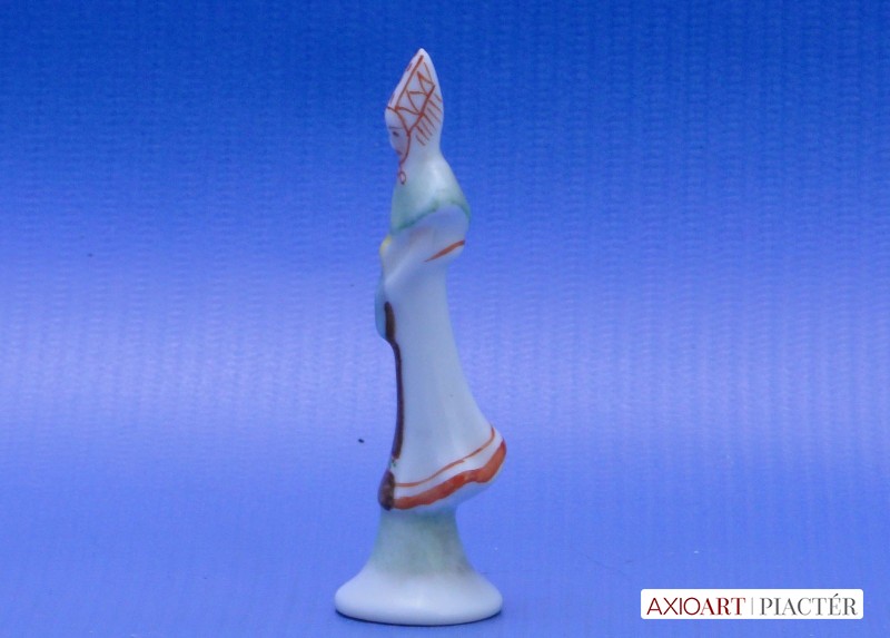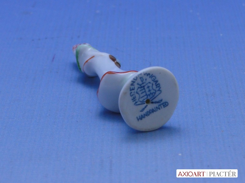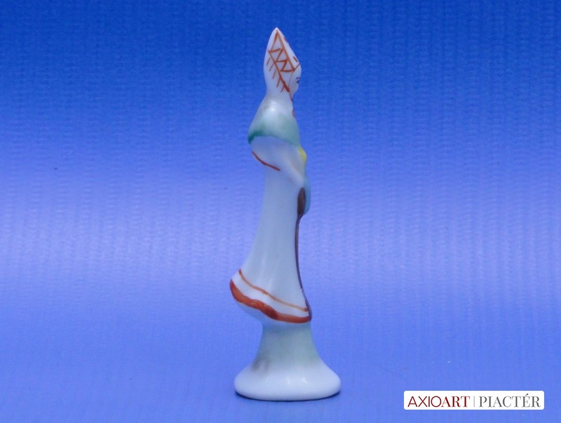 [0C548/UZ-K] Hibátlan állapotú, kisméretű menyecske figura, miniatúra, fején fejkendő. Alján kék herendi koronás márkajelzés: HEREND HUNGARY HAND PAINTED Mélynyomással: HEREND Magasság: 7.3 cm Súly: 0.01 kg