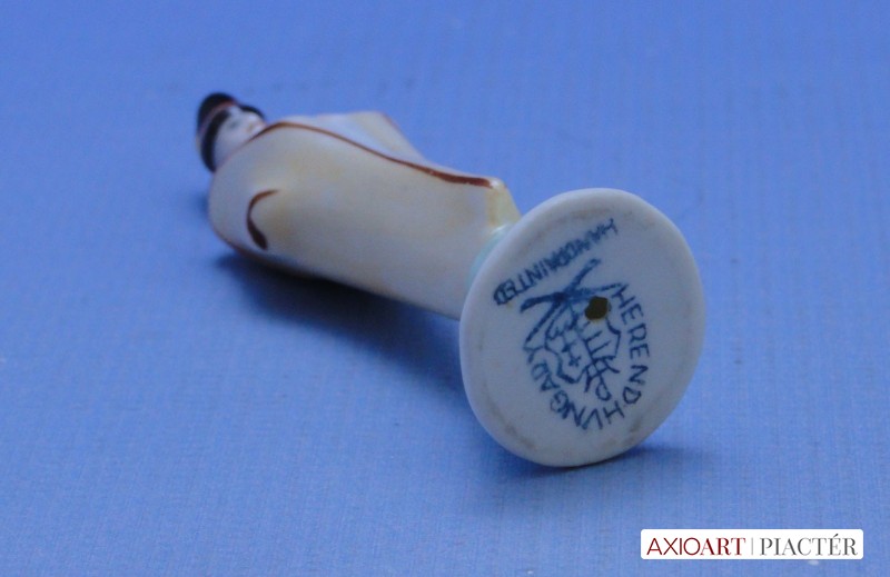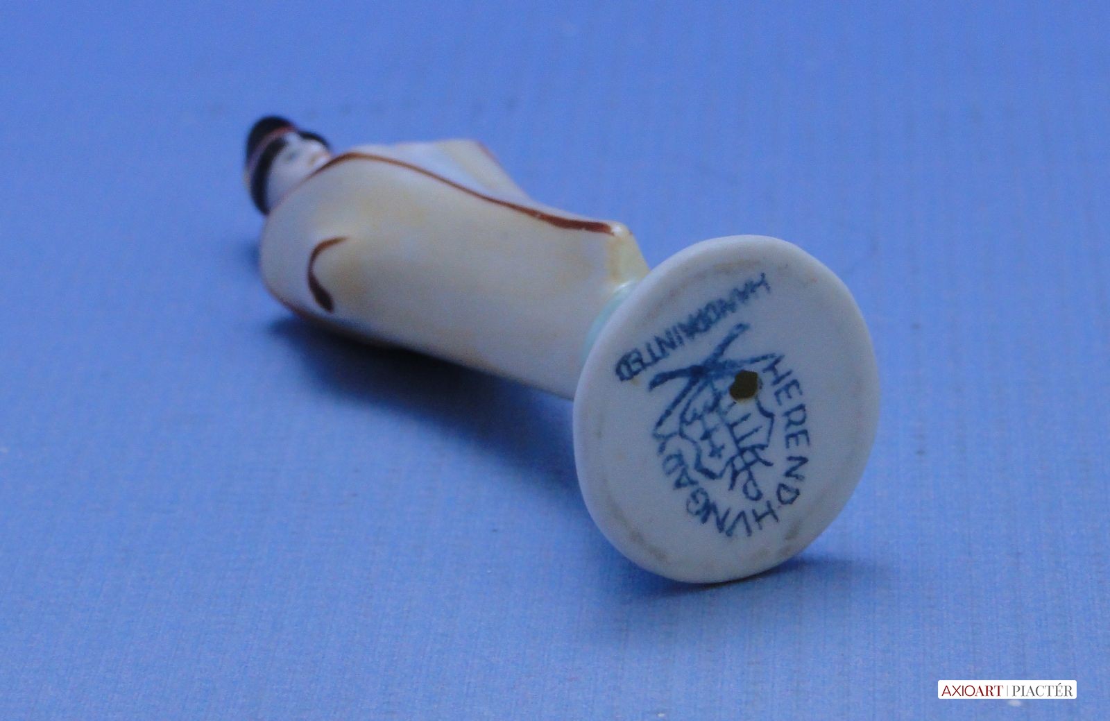 [0C549/UZ-K] Hibátlan állapotú, kisméretű kalapos legény figura, miniatúra. Alján kék herendi koronás márkajelzés: HEREND HUNGARY HAND PAINTED Mélynyomással: HEREND Magasság: 7.5 cm Súly: 0.015 kg