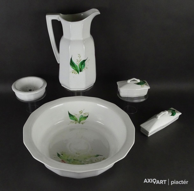 Antik hibátlan 5 darabos porcelán mosdókészlet mosakodó készlet