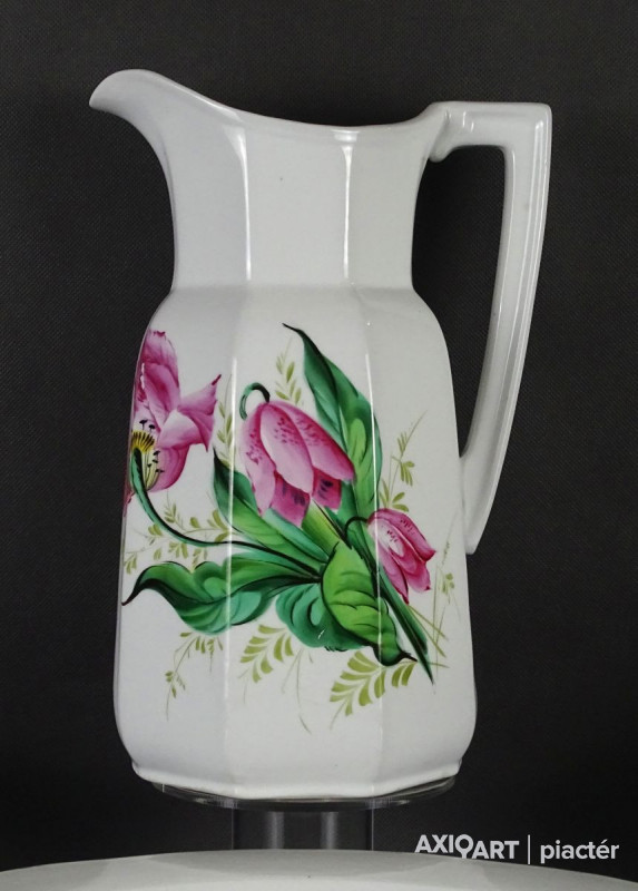 - 1 darab nagy méretű mosdókancsó (34 x 16.8 x 22.3 cm) Fülénél kisebb hajszálrepedés.