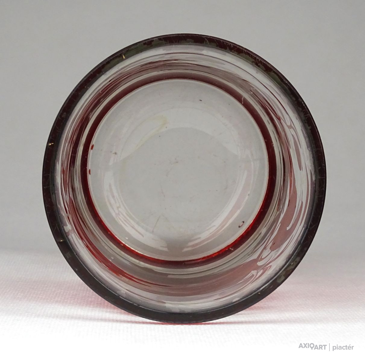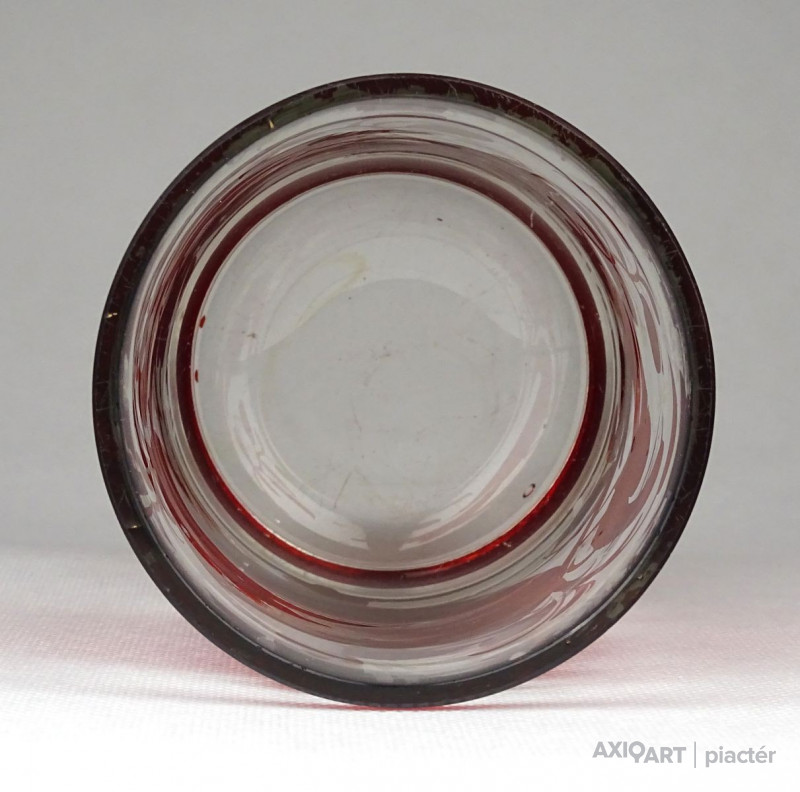 Antik hibátlan madaras Biedermeier bíborpácolt kúrapohár EMLÉKÜL felirattal