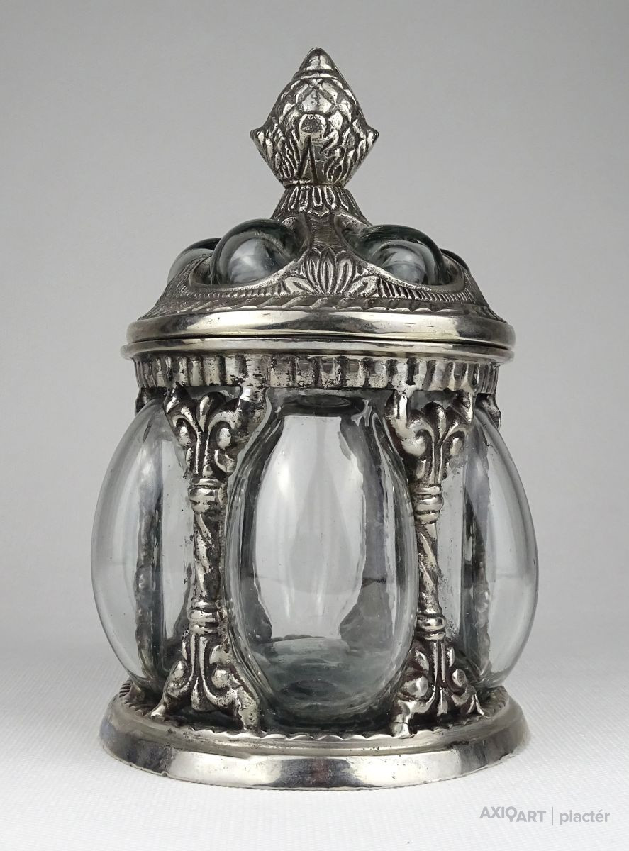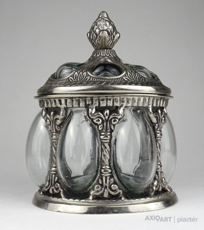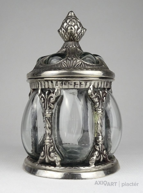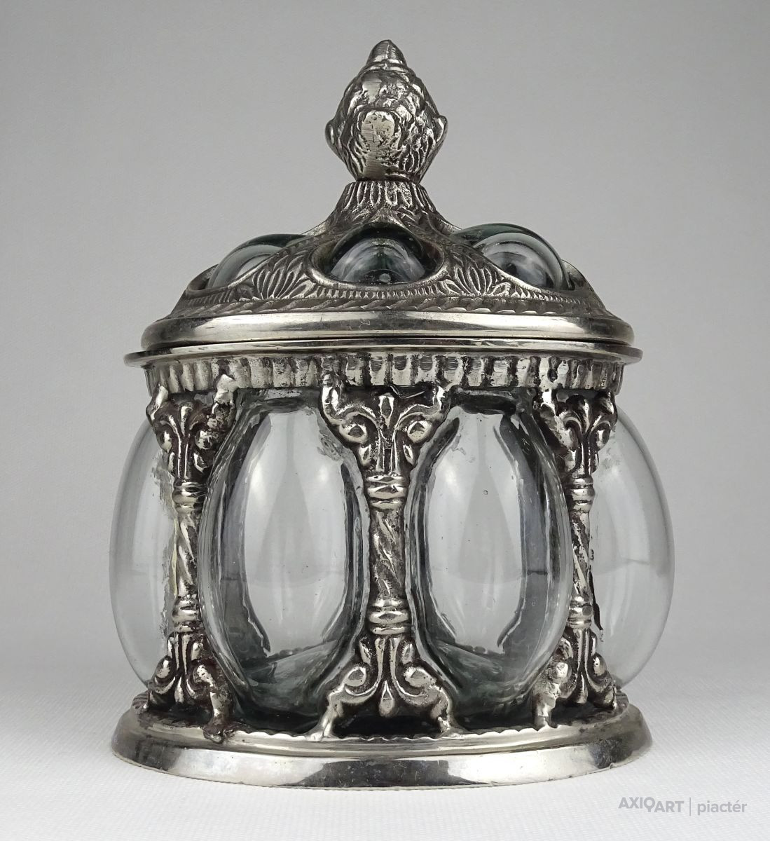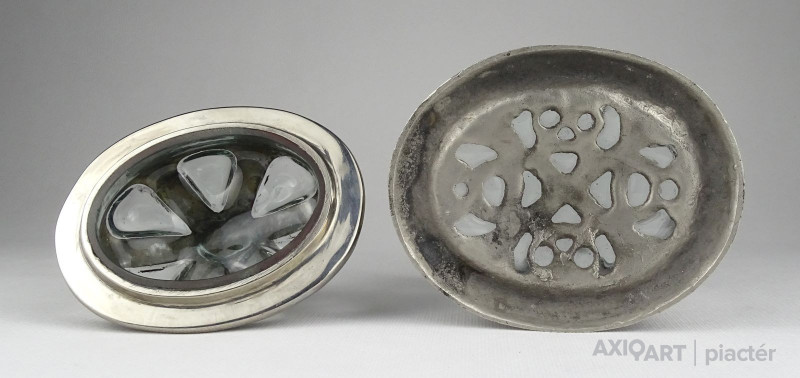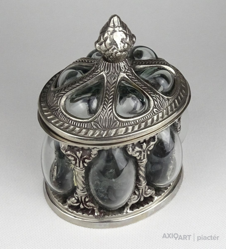 Antik hólyagos üvegbetétes fém cukorkínáló bonbonier