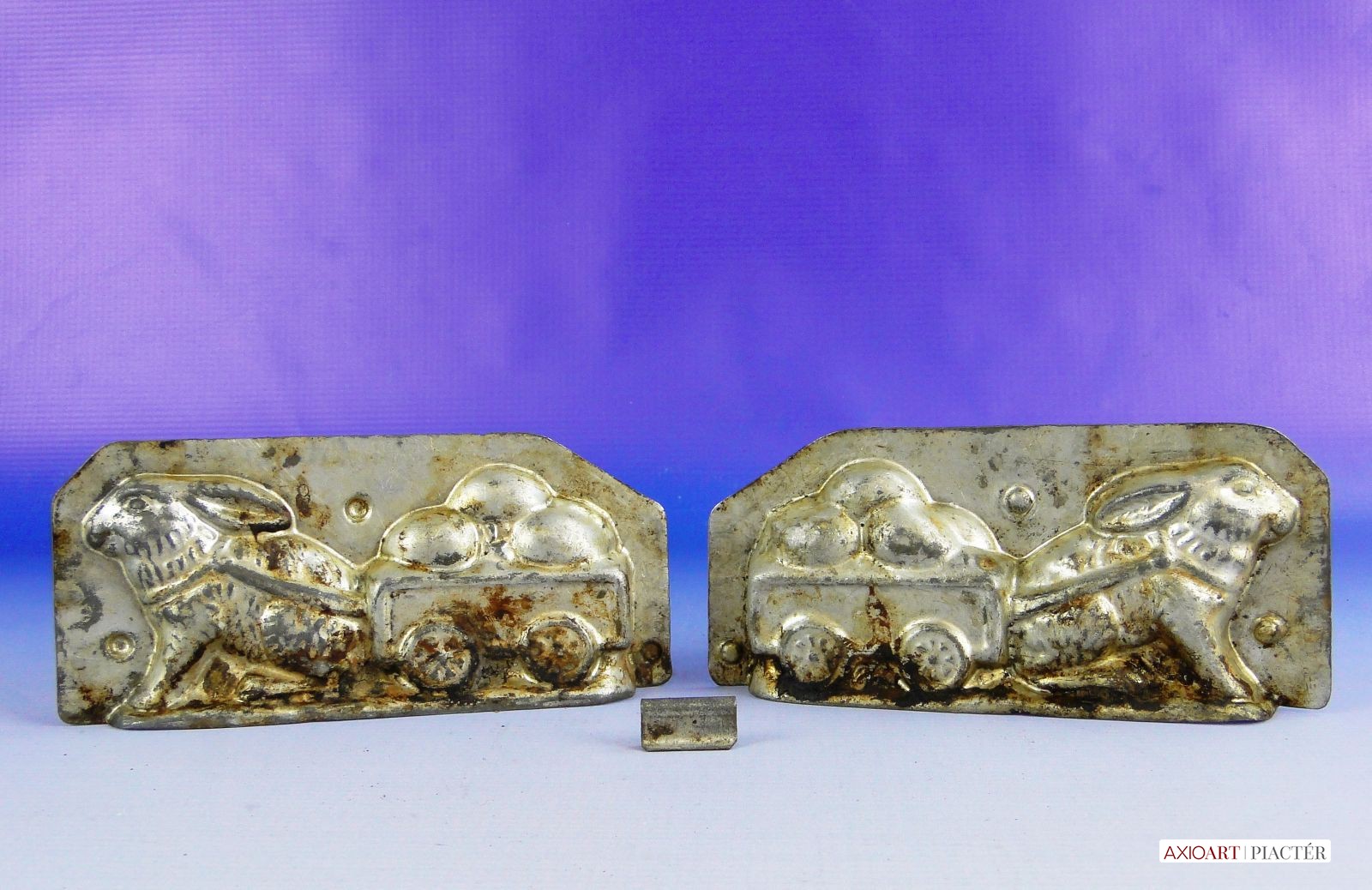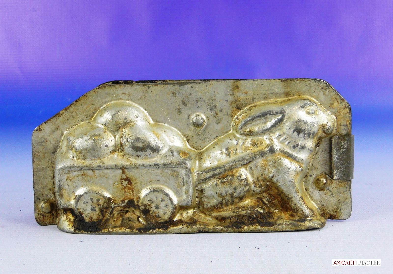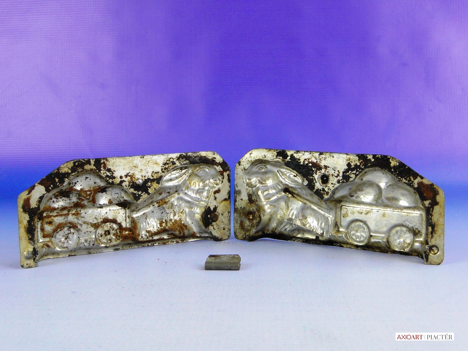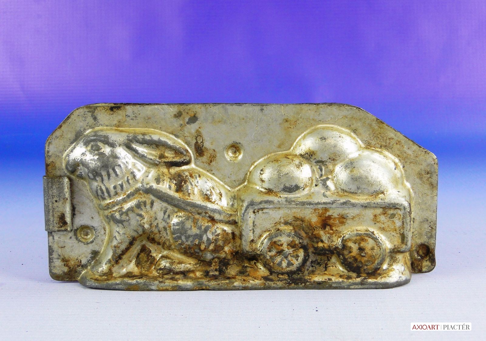 Antik kis méretű húsvéti nyuszi alakú csoki öntő forma, cukrászati eszköz.