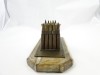 10 töltényhüvely díszítéses asztali hadi emlék, alatta gravírozott felirattal, márvány szerű talapzaton.