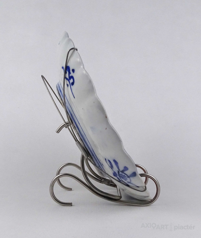 Antik, hibátlan állapotú, gazdagon díszített, kézzel festett, japán porcelán dísz tál, falitál. A tányéron fémből hajlított pánt található, aminél fogva falra akasztható.