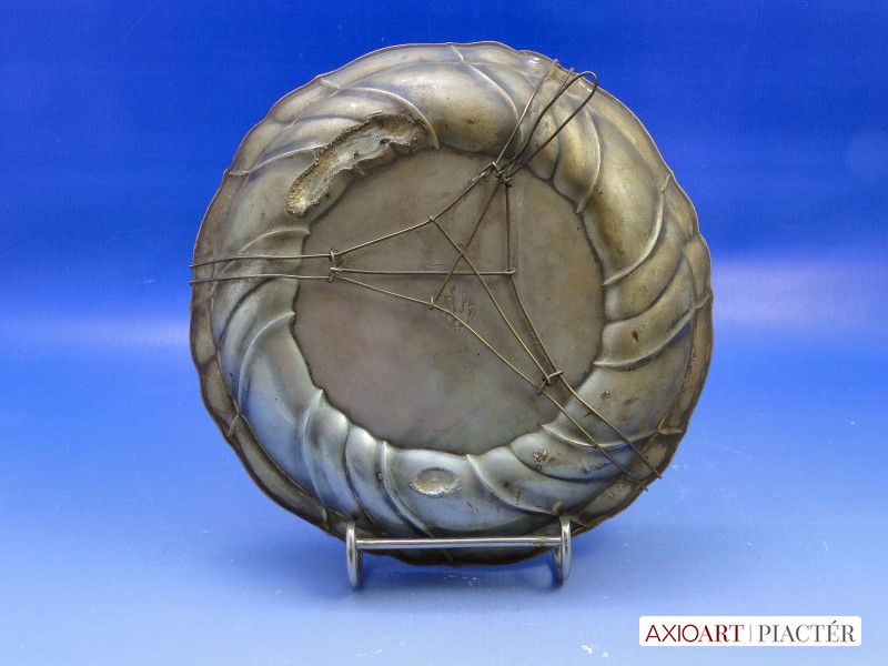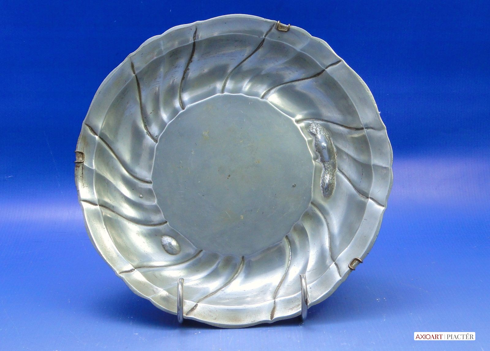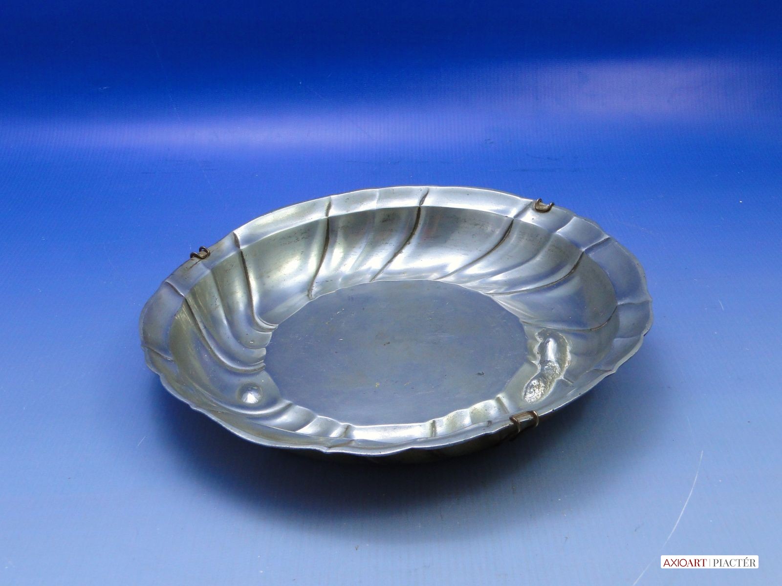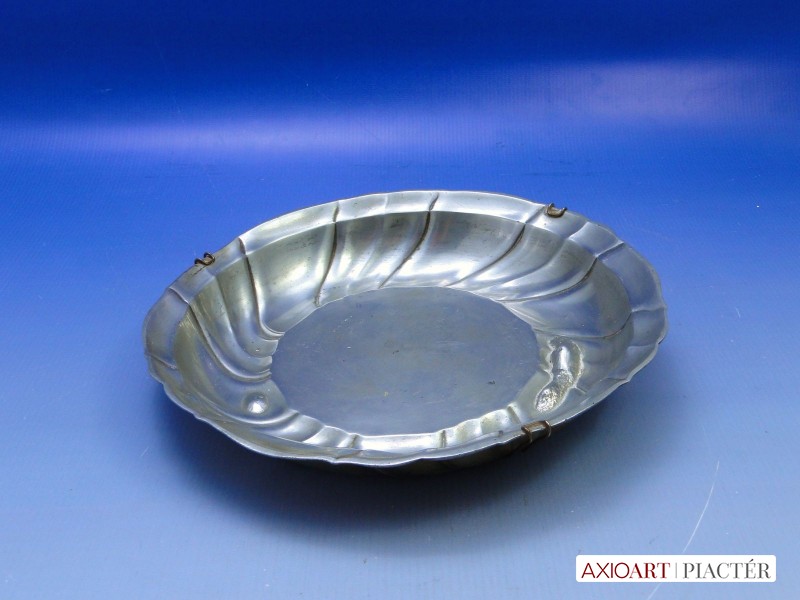 Szép állapotú fodros szélű kerek alakú jelzett kínáló óntál a XVIII. századból.