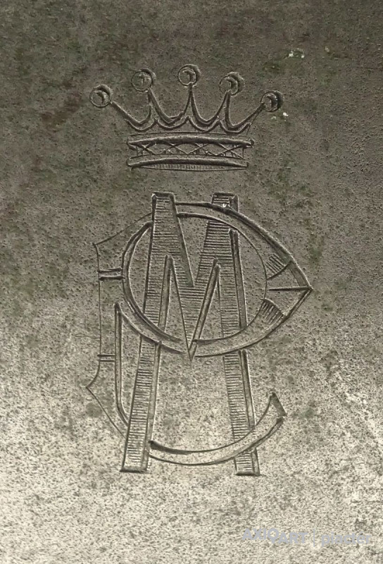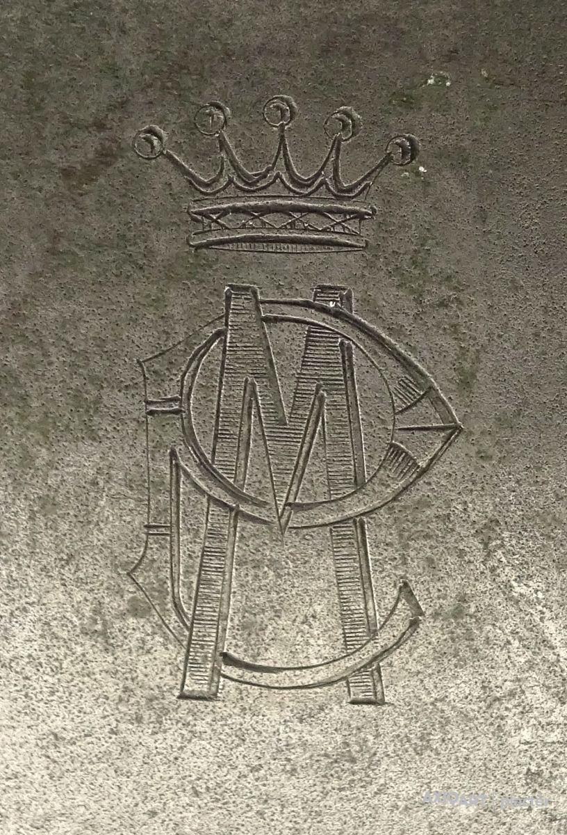 Oldalán koronás iniciálés tulajdonosi monogram: