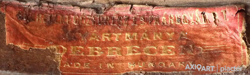 [1Y029/Z018] Olaj farost festmény, üveglap mögött, hibátlan képcsarnokos keretben. Hátoldalán Képcsarnok Vállalat papír címkéje: A művész neve: SCHÉNER MIHÁLY A kép címe: TÁJ Magasság: 66.5 cm Szélesség: 86 cm Súly: 6.54 kg Schéner Mihály festő, grafikus, szobrász, keramikus, bábtervező Medgyesegyháza, 1923-01-9 Elhalálozott: Budapest, 2009. május 11. Honlap: http://www.kormendigaleria.hu/kiadvany.html 1942-1947: Magyar Képzőművészeti Főiskola, tanára: Rudnay Gyula. 1978: Munkácsy-díj; 1984: érdemes művész; 1989: kiváló művész; 1995: Kossuth-díj. 1992-től a Magyar Művészeti Akadémia, 1993-tól a Széchenyi Irodalmi és Művészeti Akadémia tagja. 1956-ig tanított. 1982: Nagyatádi Faszobrász Alkotótelep, 1985: Nemzetközi Acélszobrász Alkotótelep, Dunaújváros. A stílusában felismerhető, mégis sokféle műtárgyat létrehozó ~ gazdag, állandóan alakuló életműve a folyton változó világban helyét kereső, az alkotói szabadságot megvalósító XX. századi képzőművész példázata lehetne. Magát expresszív-szürrealista alkotónak nevezi. Egyaránt dolgozik festékkel, textillel, fával, fémmel. Rajzol, szerkeszt, farag, épít, gyúr, varr és ragaszt, felhasználja a mézesbábok öntőformáit. Festő, rajzoló, textilszobor- és bábkészítő, fazekas, asztalos, esztergályos. Háromlépcsős folyamatban gondolkozik: rajzban tervez, majd fest, szobrot készít, “formába önt”, mindig a végső plasztikai megoldást keresi. Ami állandó és mégis játékosan változékony megjelenésű Schéner művészetében, az a gyermekkori emlékek által meghatározott népi mesterségek iránti tiszteletet kifejező motívumkincs, a tárgyi folklór formakészlete, amely már-már kézjegyként ismétlődik munkáin. Mitologikussá nőtt képzelete új lényeket teremt, pl: a Pigulát, amely disznótestű, emberfejű teremtmény. Schéner festményein a szürrealista motívumokat konstruktív szerkezetbe rendezi, a geometriát és az organikus természeti motívumokat egyaránt beépíti műveibe. A népi, népművészeti formakincsből merített lovas huszárok, betyárok, szegénylegények cifra szűr mentéje, piros csákója, fekete csizmája, az önálló életet élő zsinórdíszek és mézeskalács bábok, a kiskocsik a gyermekkori vásárok, búcsúk színes forgatagába vezet. A primér motívumokat aztán felváltják a vastagon felhordott felületbe karcolt jelek, vonalhálózatok, amelyek a játszó gyermek homokba rajzolt ábráit, a pásztorember fába vésett üzeneteit, az ősember barlang falába rótt mágikus jeleneteit idézik meg. A művész pillanatnyi érdeklődésének megfelelően a színek búvópatakként tűnnek el és jelennek meg ismét. A 60-as években leginkább a formákkal való játék érdekelte, a festmények felülete egyre gazdagodott: a táblaképek felületén applikációk jelentek meg, vagy lemállasztott rétegek hagyták maguk után hiányukat, motívumok nélküli ősformák, archetipikus képzetek bukkantak fel művészetében. A véletlenszerűnek látszó rétegekkel való játék azonban tudatos komponálás eredménye, amely később nyilvánvaló ritmusnak és formai szerkesztettségnek adja át a helyét, mint a Törvénytáblák c. sorozaton. A különböző művészi kifejezési formák egymásra termékenyítő hatással vannak, át- meg áthatják egymást. Textilszobrai, amelyekkel új műfajt teremtett, ugyanazzal az automatikus, expresszív-szürrealista módszerrel készülnek, mint festményei. A hagyományosan a népművészetben alkalmazott anyag, a filc lehetőséget ad a népi formakincs felelevenítésére, amely azonban a művész különös szürrealista átiratában jelenik meg. A szívekkel kivarrt, zsinórdíszes Posztókotlós c. művén mézesbábok lógnak, hátán huszárok lovagolnak. Egész sor textilből készült kéz-plasztikát alkot, amelyeket az ujjakra rávarrt díszekkel öltöztet, személyesít meg. A színes-különös világból aztán ~ újra puritán képi és formai rendbe juttatja el a nézőt, majd nemsokára tépett, gyűrt, vágott, csorgatott, repedezni hagyott szenvedélyesen vonagló képi felületeket hagy hátra. Schéner készített apró gyermekjátékokat, térstruktúra-tereket, mászókákat is. A magyar népi formák mellett szürreális játékaiban gyakran alkalmaz görög mitológiai alakokat, “elkentaurosodott” lovakat, Gorgó-fejeket, sellőket, hárpiákat, Pán-ábrázolásokat. Schéner nemcsak saját művészetéről publikál, hanem művésztársairól is számos írása jelenik meg, elsősorban az Új Auróra c. folyóiratban, amelynek egy ideig főmunkatársa volt. Irodalom kiállítása, Magyar Építőművészet, 1962/4. Húsz év után, Művészet, 1965/4. BOZÓKY M.: ~, Tiszatáj, 1968/5. PERNECZKY G.: Nincs uborkaszezon, Élet és Irodalom, 1969. augusztus 8. BARÁNSZKY-JÓB L.: ~, Művészet, 1969/9. LÁSZLÓ GY.: ~ kaposvári kiállítása, Jelenkor, 1969/4. MAJOR M.: Pásztorok, betyárok, huszárok - kezek, Tükör, 1970. szeptember 15. FRANK J.: Bemutatjuk ~t, Élet és Irodalom, 1972. május 6. ról kiállítása ürügyén, Képzőművészeti Almanach, Budapest, 1972 Sötétkék kokasok, Élet és Irodalom, 1973. szeptember 9. MAJOR M.: ~ játékai, Élet és Irodalom, 1974. július 27. BARTA J.: Egy különös művész, Alföld, 1974/6. VADAS J.: Szárnykészítők, Élet és Irodalom, 1975. október 4. JUHÁSZ F.: A halál ellen játszani, Élet és Irodalom, 1975. május 17. PAP G.: Kincsek és műkincsek, Művészet, 1975/6. P. SZŰCS J.: Az utak kettéválnak, Művészet, 1978/3. Békési művészet, Művészet, 1978/7. SZAMOSI F.: ~ [kismonográfia], Budapest, 1978 VADAS J.: Játék a játékkal, Élet és Irodalom, 1979. augusztus 18. NÉMETH L.: ~ műveiről, Művészet, 1979/4. MIKLÓS P.: Mit akar ez a múzeum?, Művésze
