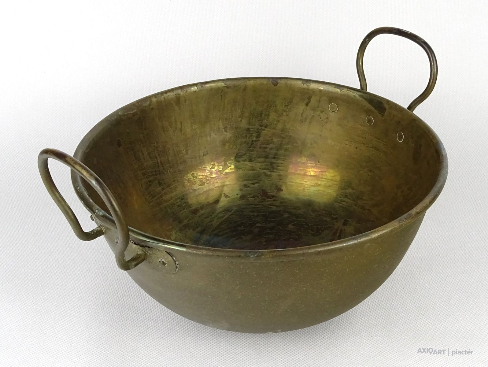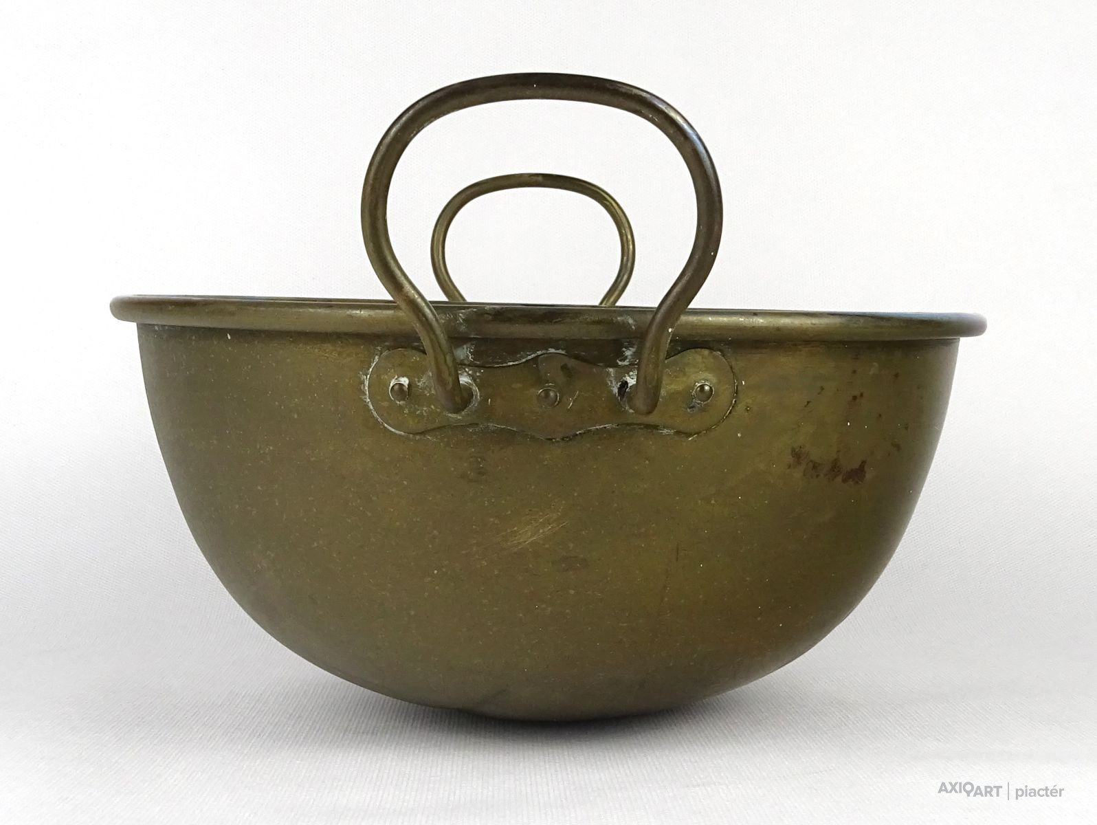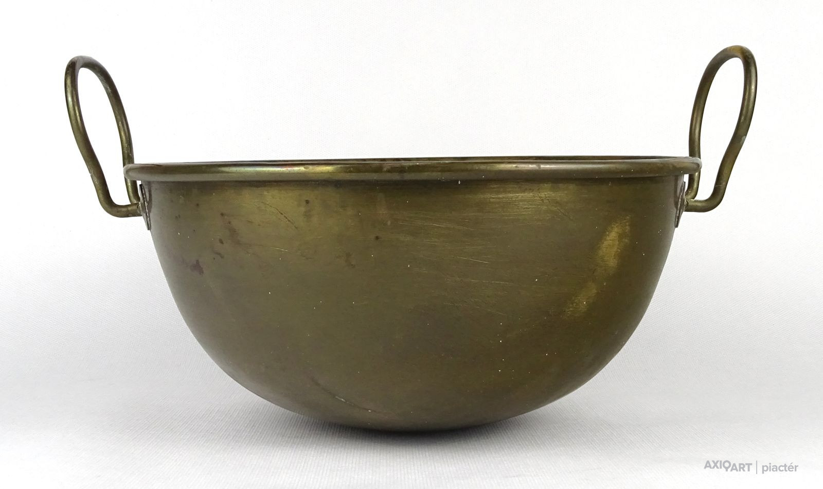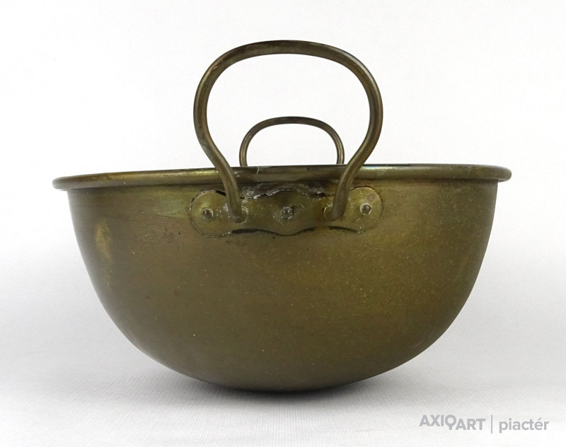 [1N295/X223] Szép állapotú, jelzett réz konyhai, cukrászati eszköz, habüst. Füleknél jelzés, lásd fotó. Magasság: 16.5 cm Szélesség: 25 cm Hosszúság: 29.5 cm Súly: 0.55 kg   Méret: 18 x 22 cm Súlya: 913 g
