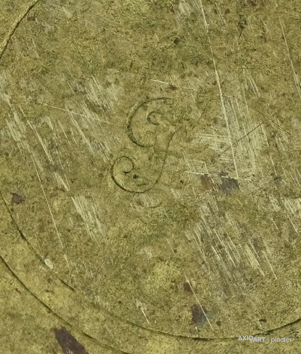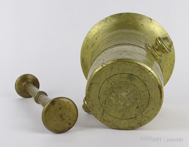 A mozsár alján ritkán látható gravírozott, vésett cirkalmas betűjel: