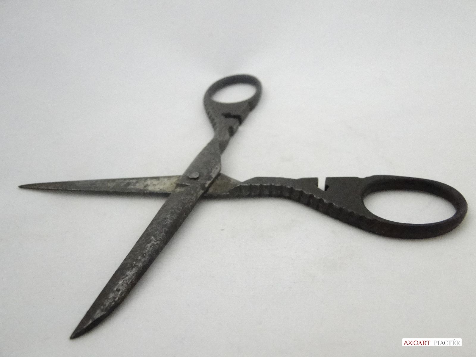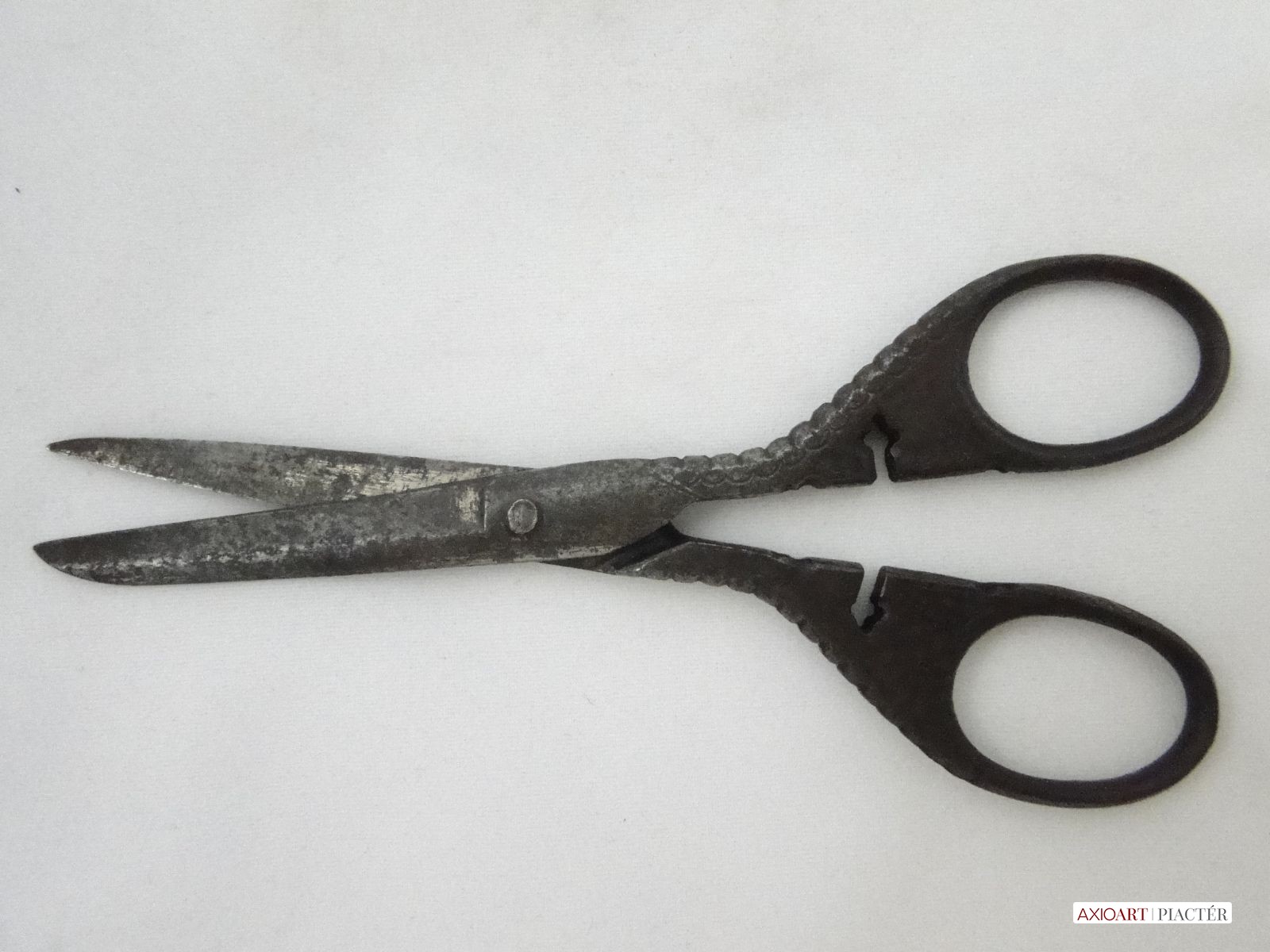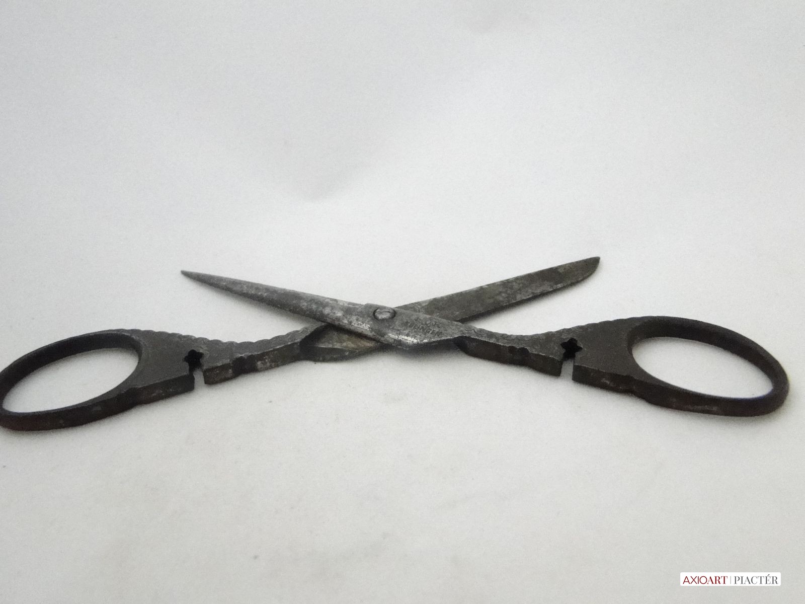 Nagyon régi szép állapotban megmaradt nagyon díszes jelzett antik apáca olló. Az olló fogó felöli részén középen egy díszes kereszt látható.