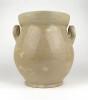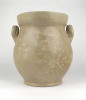 [1D778/X250] Antik, közepes méretű, szürkés színű, kétfülű kőcserép tárolóedény az 1800-as évek végéről. Talpán egy lepattanás található. Magasság: 18.5 cm Szélesség: 17 cm Súly: 1.165 kg