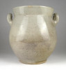 Antik, ép állapotú, jelzett, szürke színű, kétfülű kőcserép tárolóedény az 1800-as évek végéről.