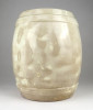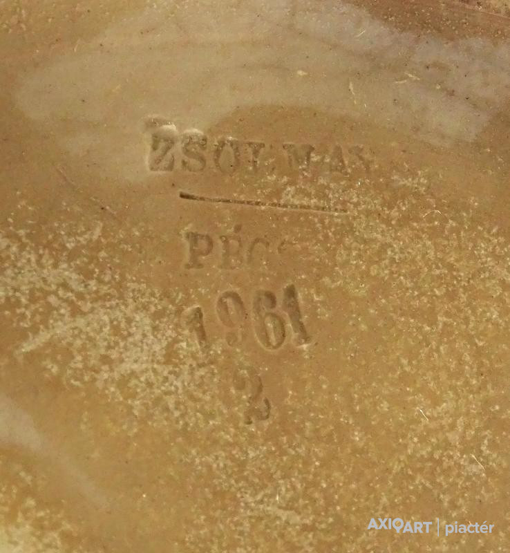 [1K702/X134] Antik, ép állapotú, jelzett, szürkés színű, hordó alakú kőcserép tárolóedény az 1800-as évek végéről. Alján jelzés: ZSOLNAY PÉCS Formaszám: 19 61 2 Magasság: 25 cm Szélesség: 21 cm Súly: 2.885 kg