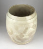 Antik, ép állapotú, jelzett, szürkés színű, hordó alakú kőcserép tárolóedény az 1800-as évek végéről.