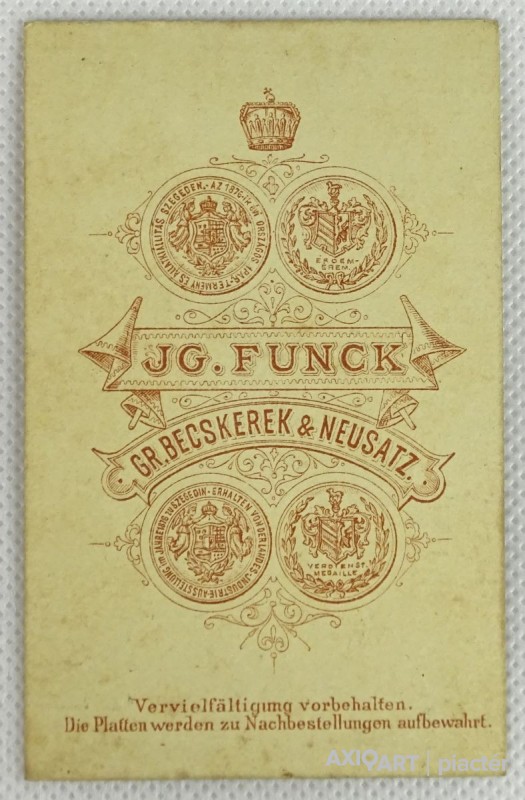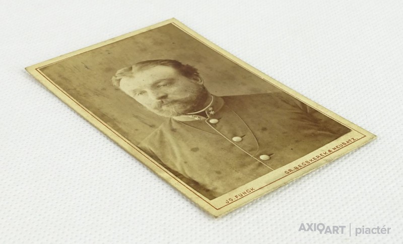 [0R886/X043] 25% ÁRENGEDMÉNY MINDEN TERMÉKÜNKRE Dec. 14-ig Antik művészi fotográfia, katona, tiszti férfi portré. Feliratok: JG. FUNCK GR. BECSKEREK & NEUSATZ AZ 1876-IK ÉVI ORSZÁGOS IPAR- TERMÉNY ÉS ÁLLATKIÁLLÍTÁS SZEGEDEN ÉRDEMÉREM Magasság: 10.5 cm Szélesség: 6.5 cm Súly: 0.004 kg