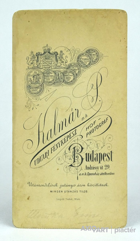 KALMÁR J. UDVARI FÉNYKÉPÉSZ HOF-PHOTOGRAF BUDAPEST ANDRÁSSY ÚT 29. A M.K. OPERAHÁZ ÁTELLENÉBEN