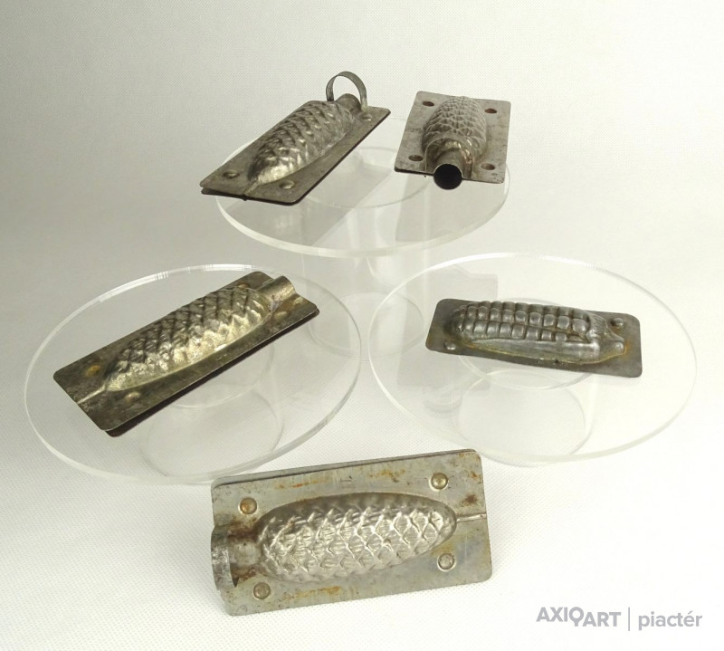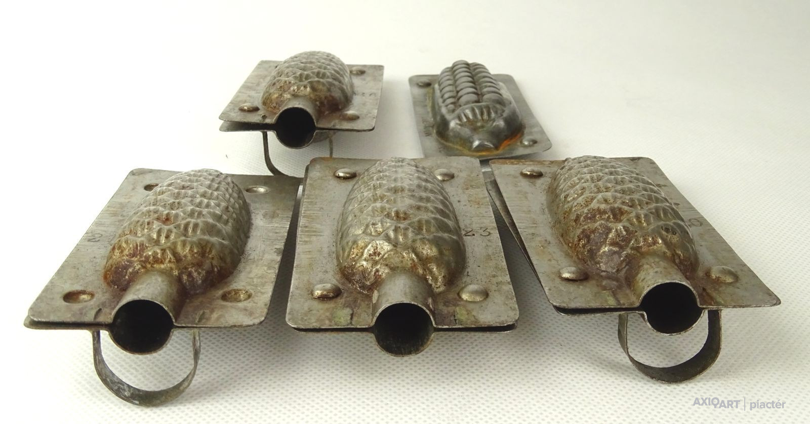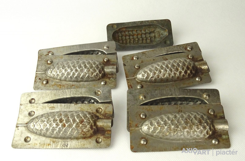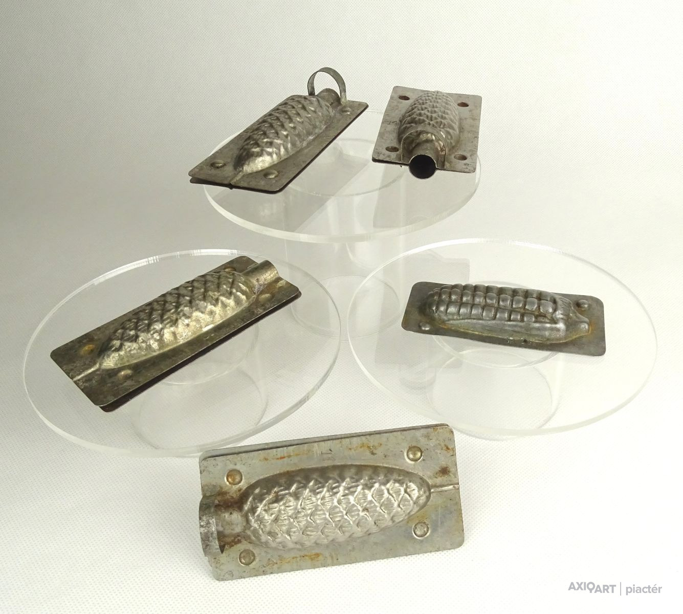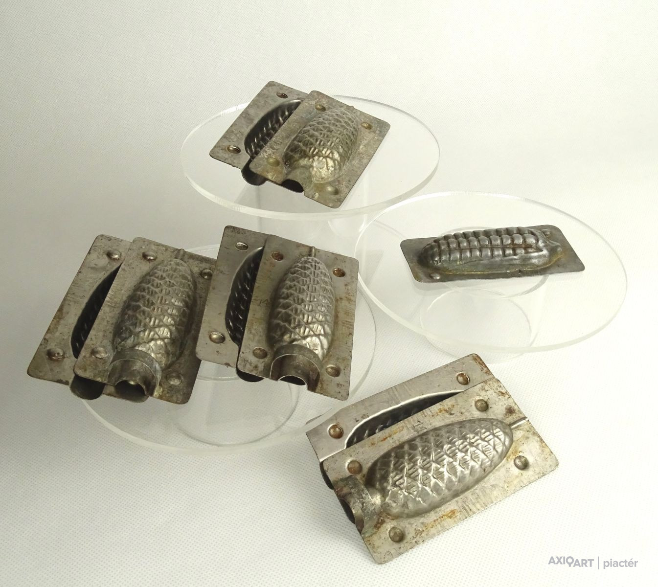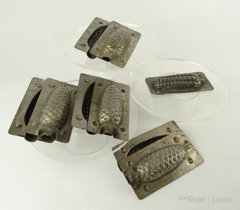 [1G103/X040] Antik, csoki öntő forma, cukrászati eszköz. 4 egész toboz és 1 fél kukorica forma. Súly: 0.231 kg