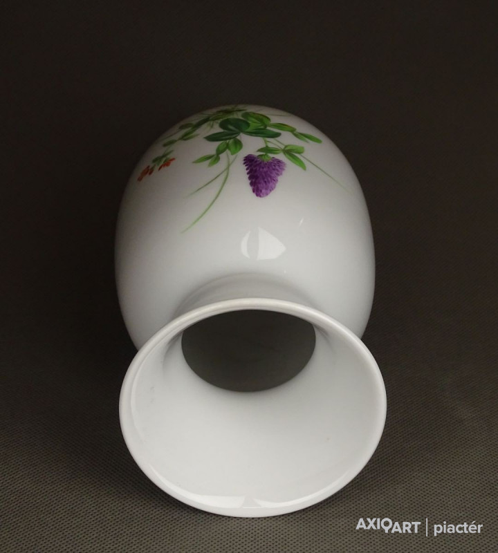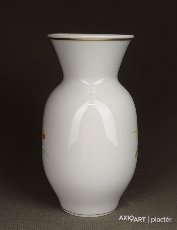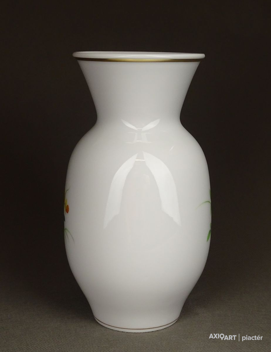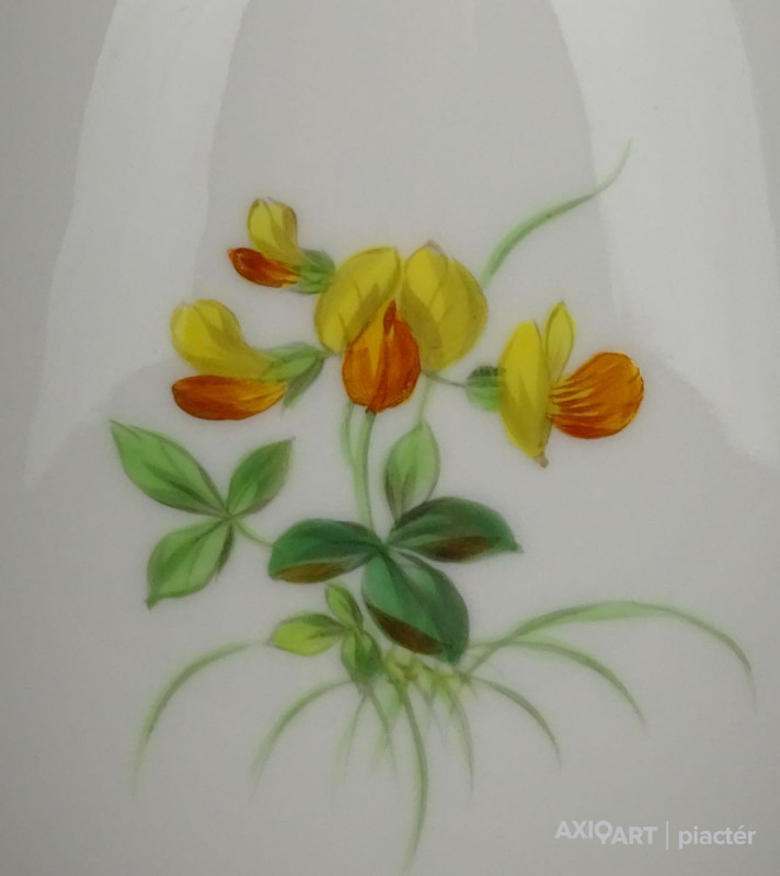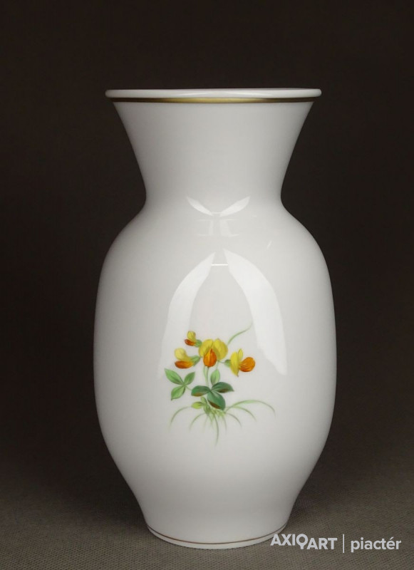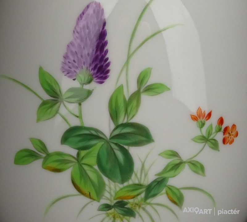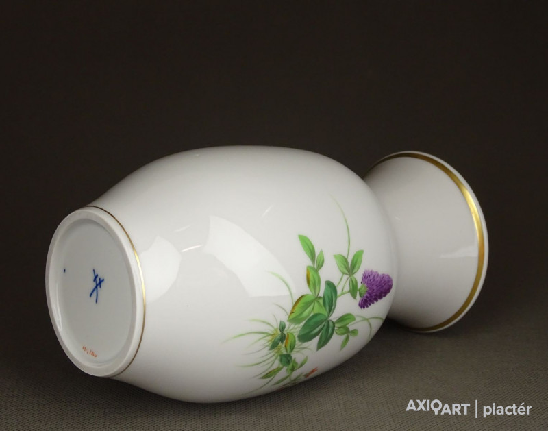 Régi, hibátlan állapotú, jelzett, aranyozott, elöl-hátul virágmintás, Meisseni porcelán váza.