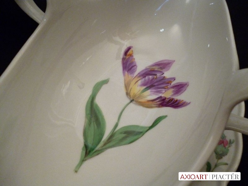Antik vastagfalú virágmintás kézi festésű kardos Meisseni szószos tál. Hibátlan állapotú.