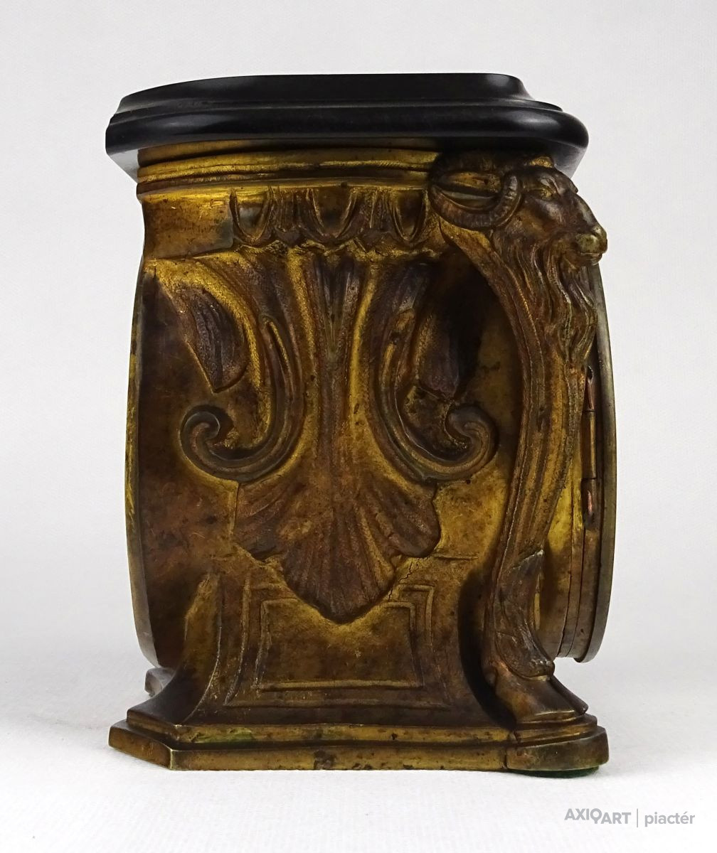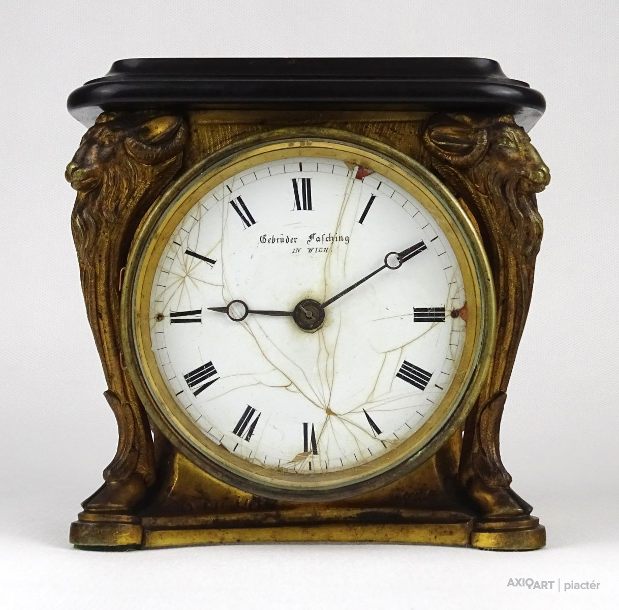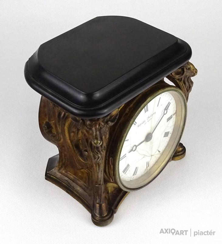 Antik kecskefejes tűzaranyozott asztalióra XIX. század GEBRÜDER FASCHING IN WIEN