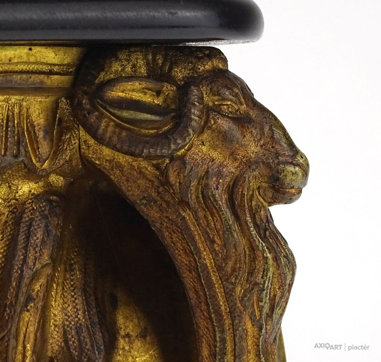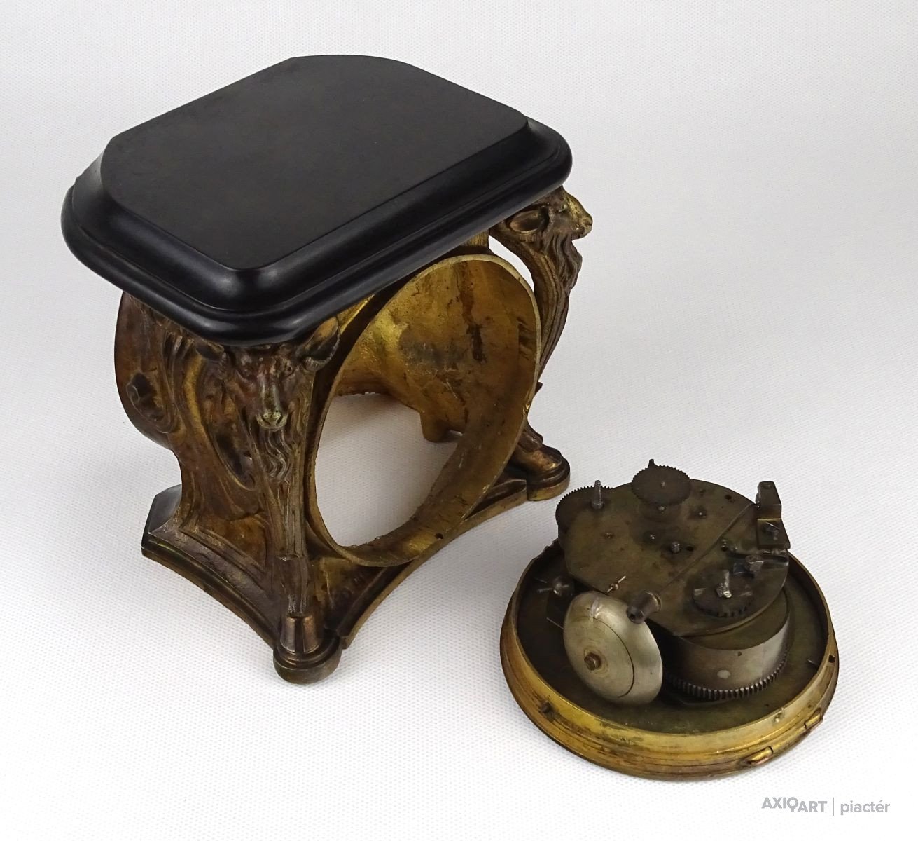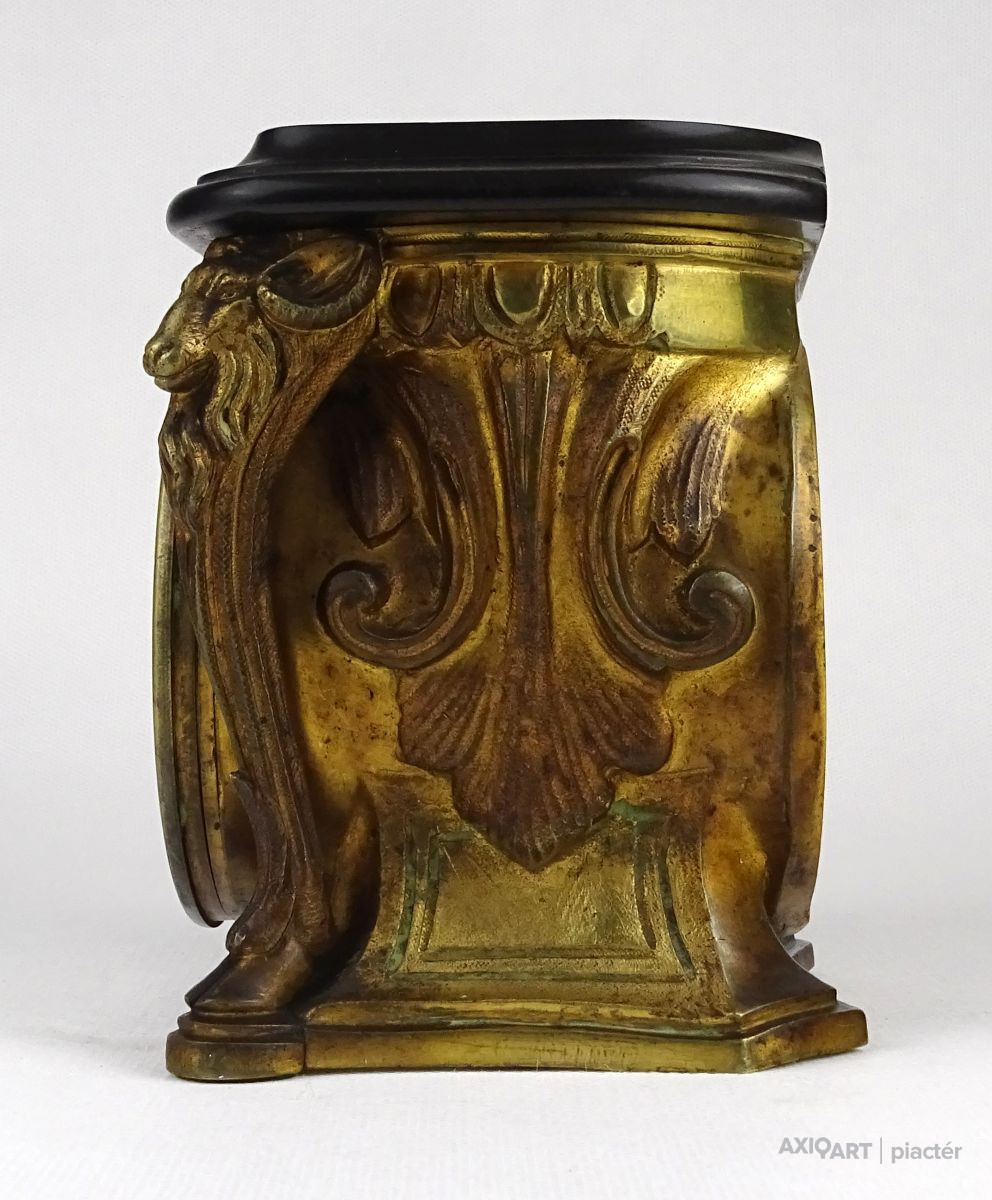 Antik kecskefejes tűzaranyozott asztalióra XIX. század GEBRÜDER FASCHING IN WIEN