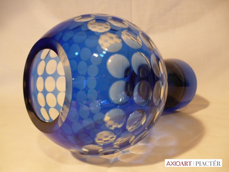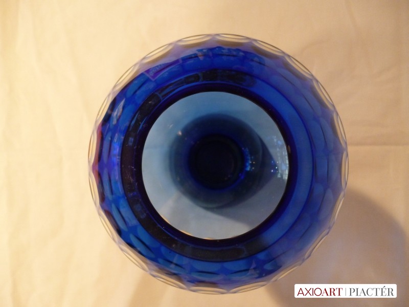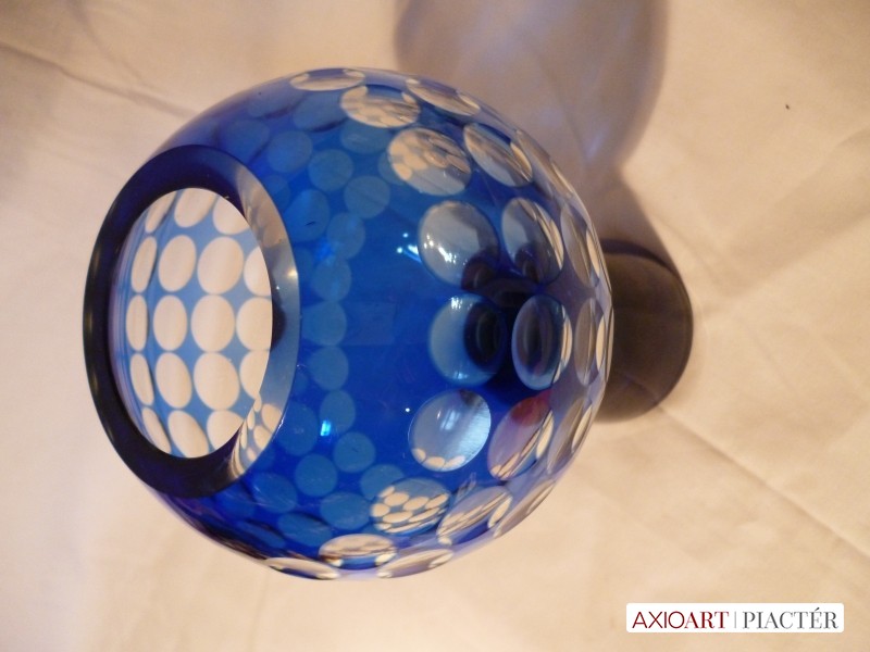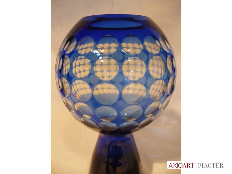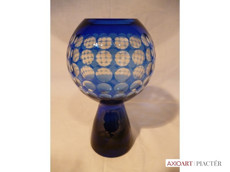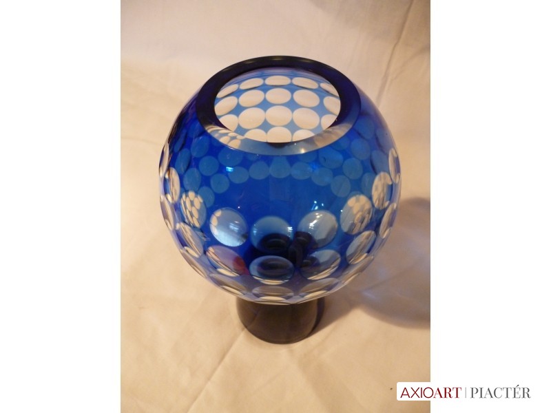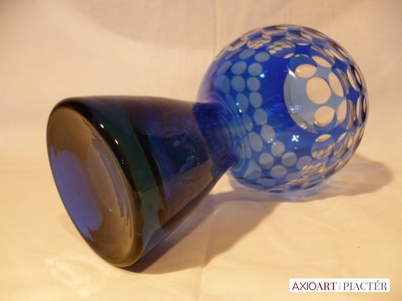 Marita Voigt, Harzkristall csiszolt kék üveg váza 1970
