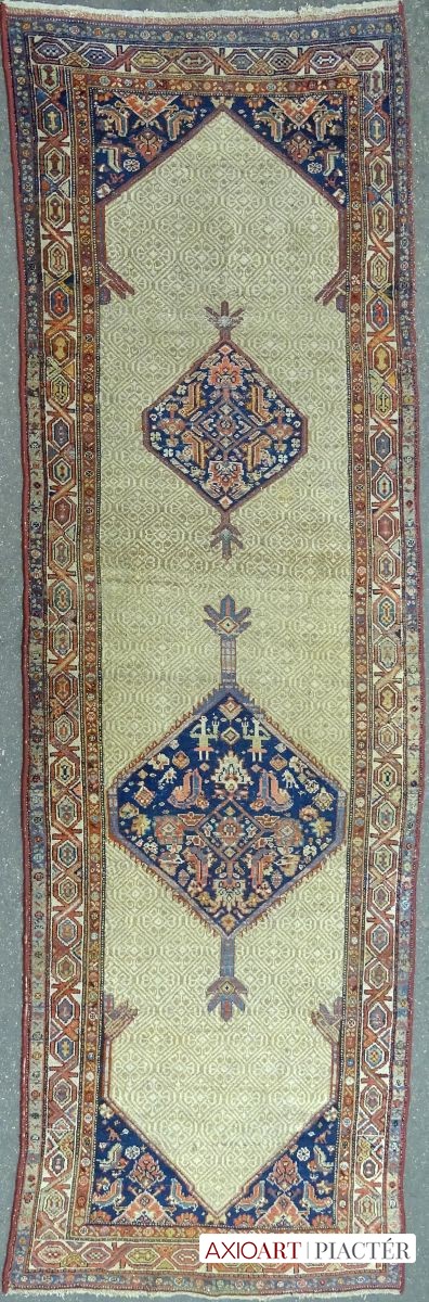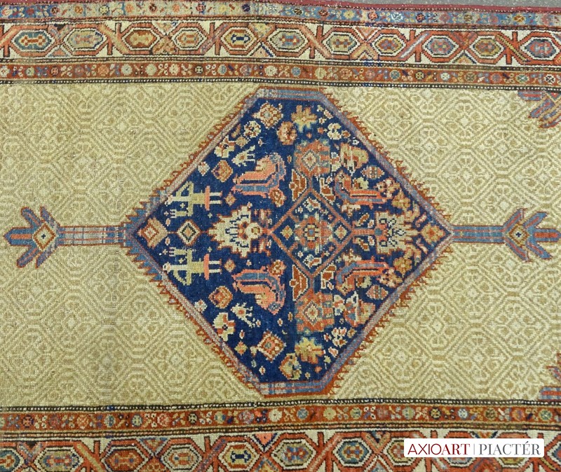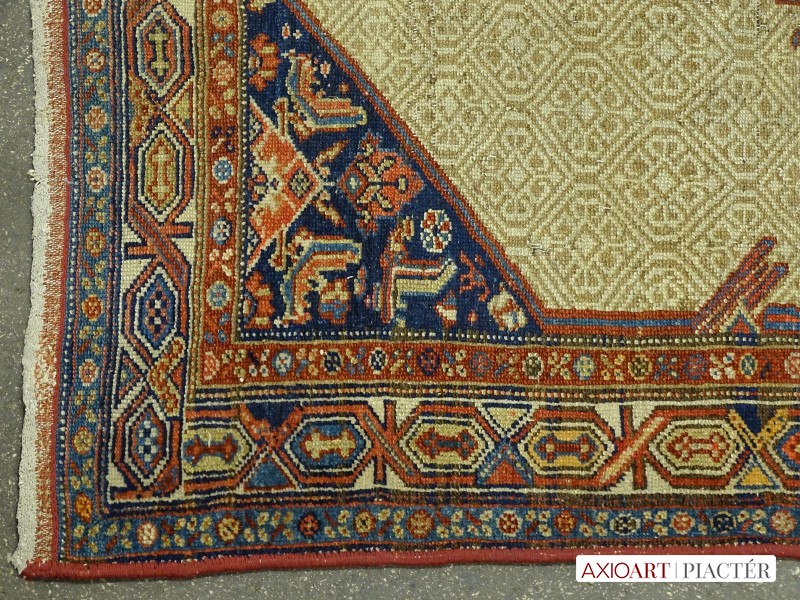 [0K180/UZ-N] 25% ÁRENGEDMÉNY MINDEN TERMÉKÜNKRE Dec. 14-ig Antik kézi csomózású, keleti mintás perzsaszőnyeg az 1800-as évek végéről, az 1900-as évek elejéről. Figurális, emberalakos hosszú szőnyeg. Szélesség: 110 cm Hosszúság: 320 cm