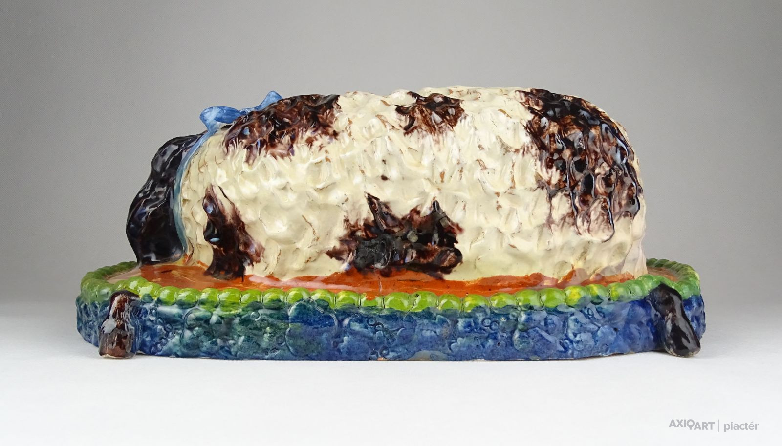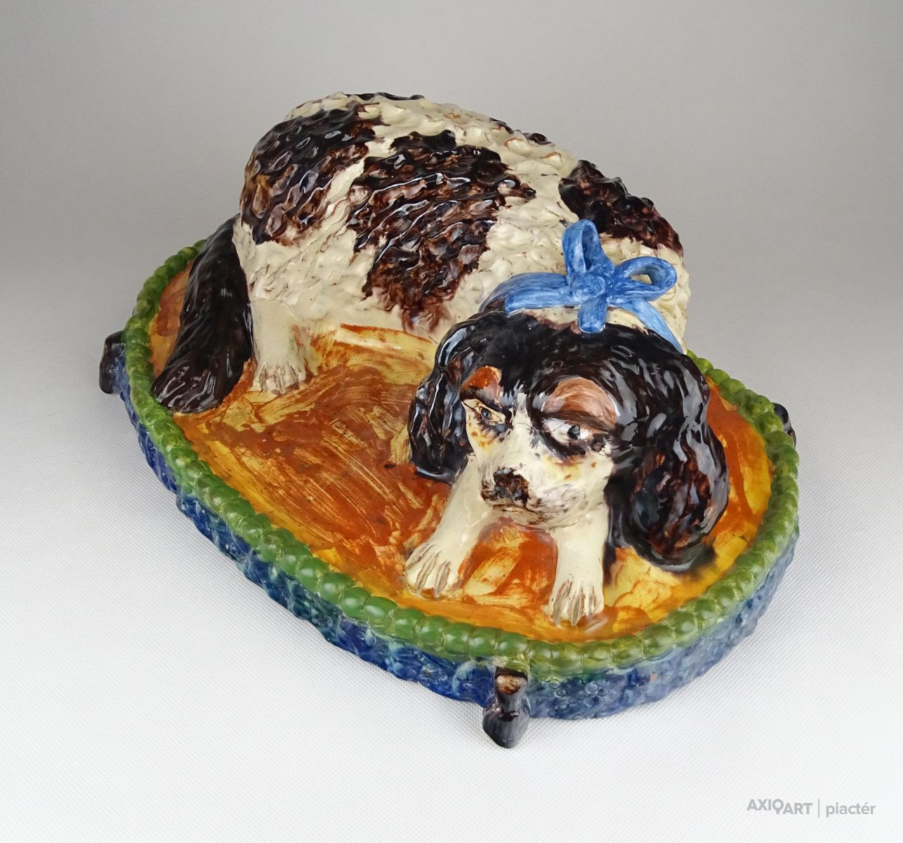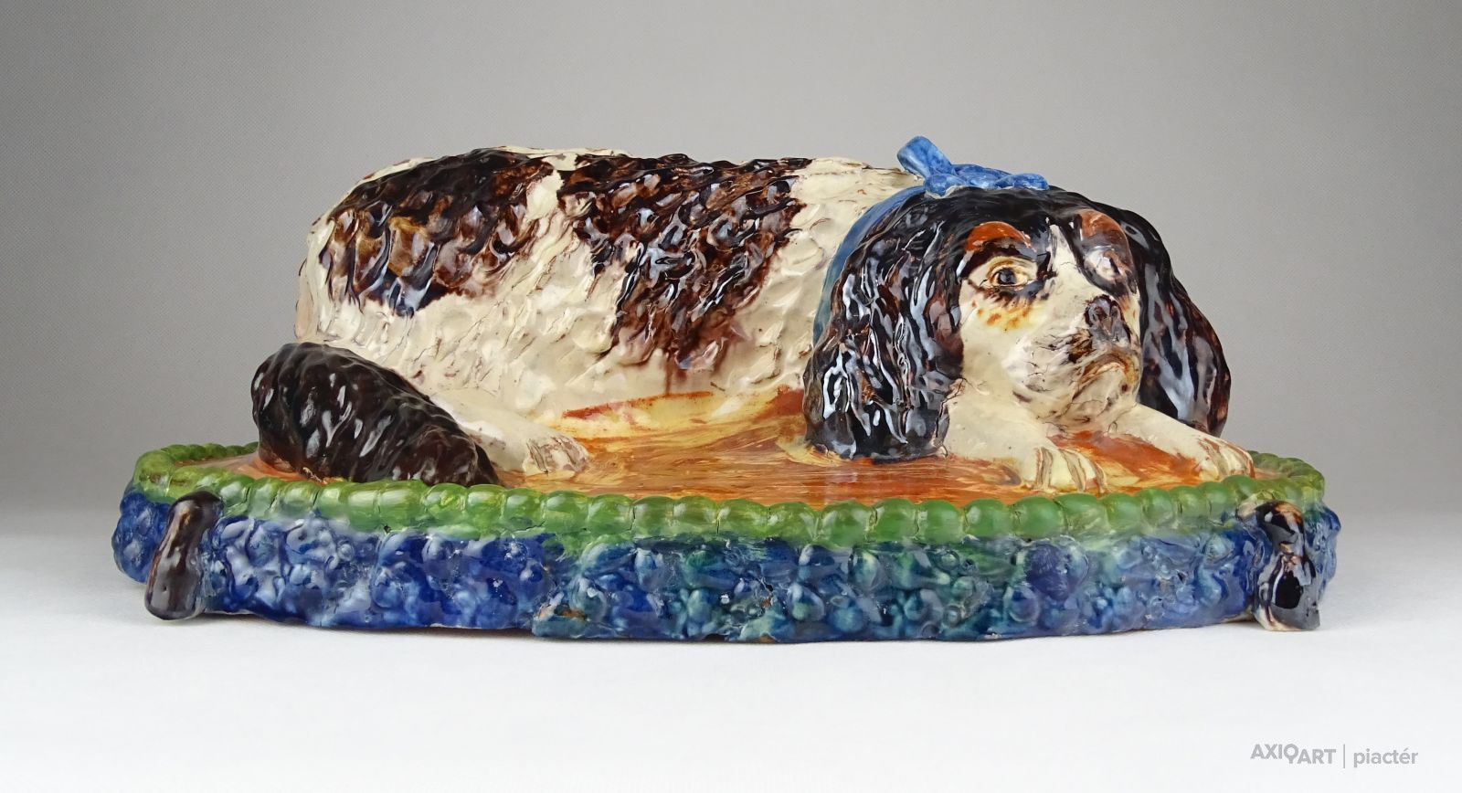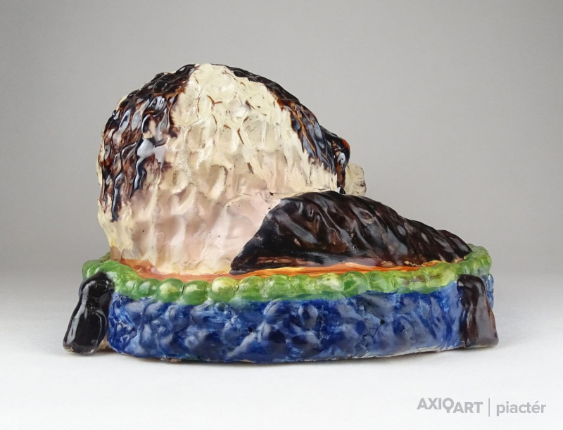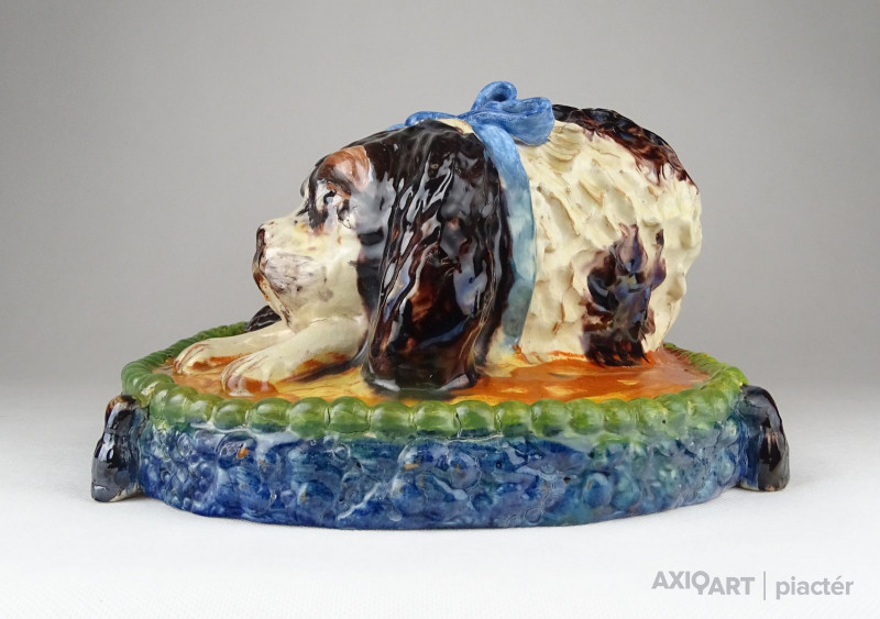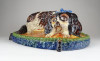 [0X418/Z065] 25% ÁRENGEDMÉNY MINDEN TERMÉKÜNKRE Dec. 14-ig Antik, szép állapotú, díszpárnán ülő spániel kutyus, gyűjtői nagyméretű mázas kerámia. Magasság: 13.5 cm Szélesség: 23.5 cm Hosszúság: 36.5 cm Súly: 3.935 kg