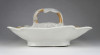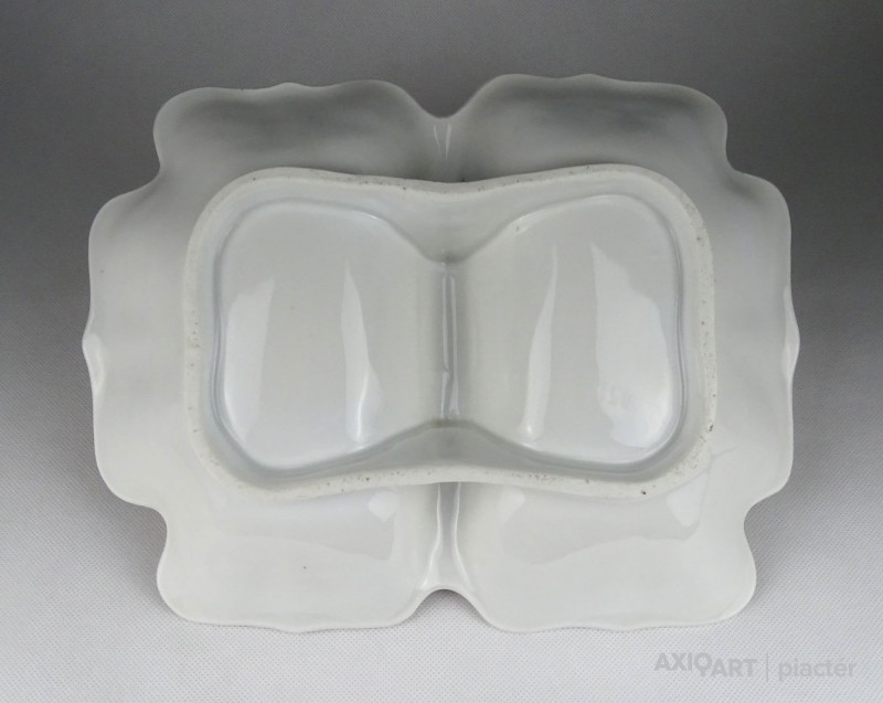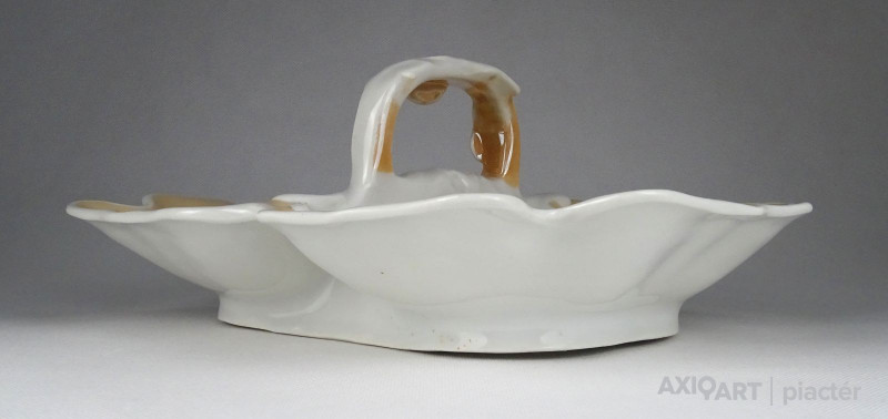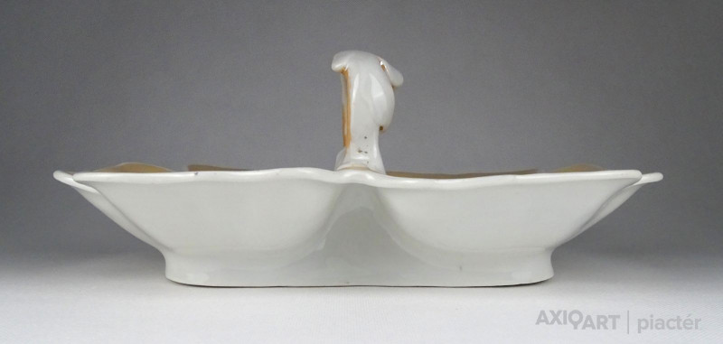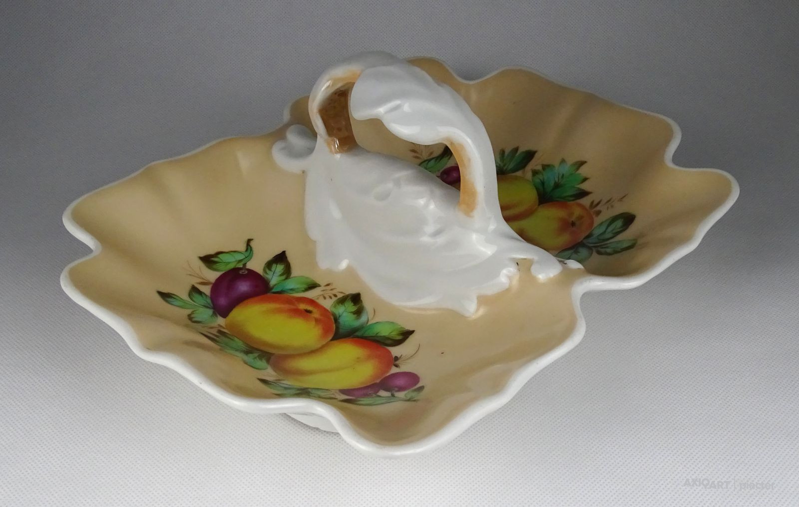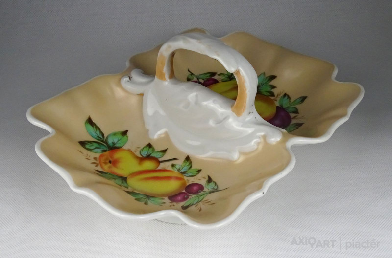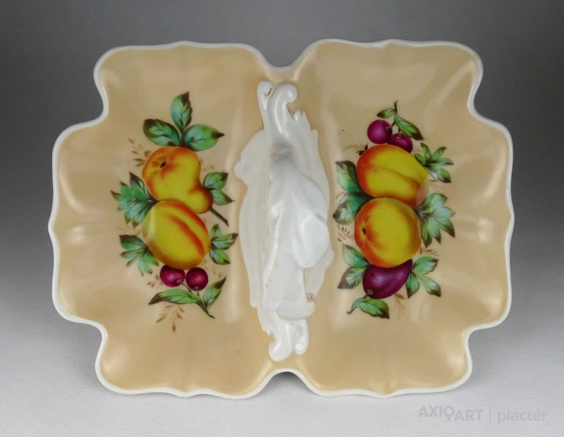 Antik, hibátlan állapotú, vastag falú porcelán asztalközép kínáló tál a XIX. századból. Rajta kézi festésű meggy, körte, barack és szilva díszítés.