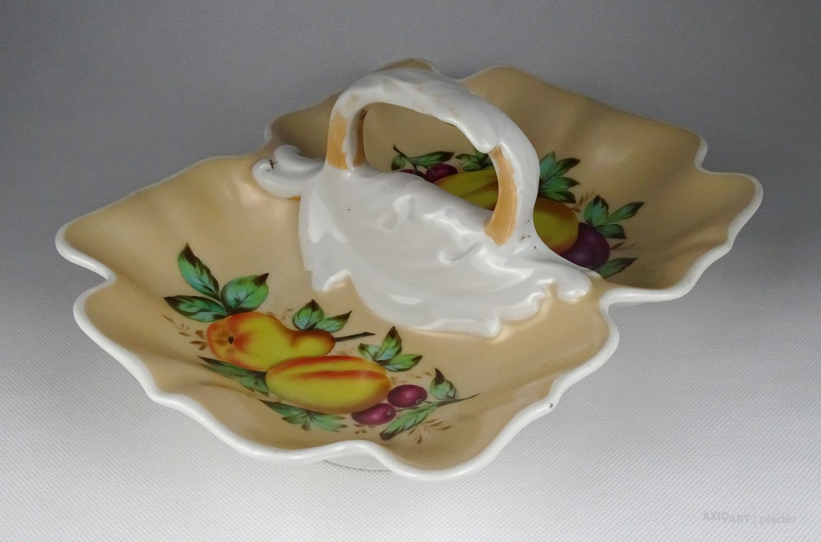 Antik kézi festett porcelán asztalközép gyümölcsös mintás kínáló tál 28 cm