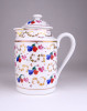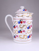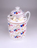 [0X730/UZ-K] Antik, kézi festésű, gazdagon aranyozott, virágmintás, hibátlan porcelán kiöntő, az 1800-as évek második feléből. Eredeti teteje is megvan. Alján mélynomott jelzés töredék, lásd fotó. Magasság: 15.5 cm Szélesség: 8.5 cm Súly: 0.425 kg