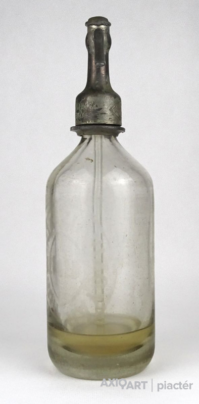 Régi kisméretű szódásüveg szikvizes üveg palack, datált ón fejjel.
