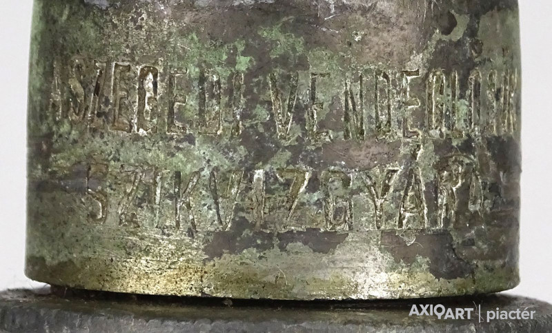Oldalán domború felirat:
